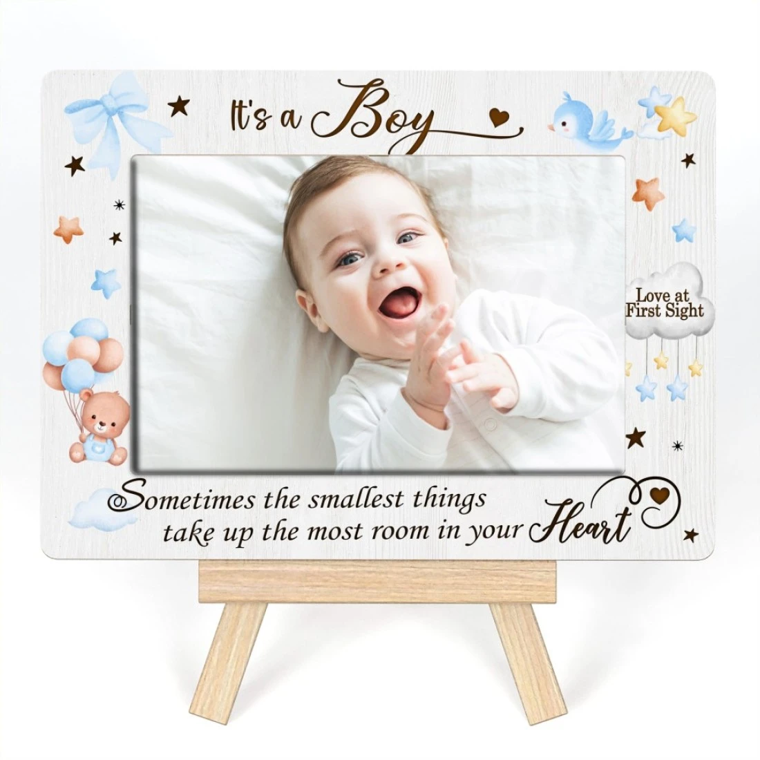 New Baby Gift, Baby Picture Frame For Boy , Sometime The Smallest Thins Take Up The Most Room In Your Heart Photo Frame, Newborn Picture Frame For Parents, Tabletop Picture Frame With Easel (A26)
