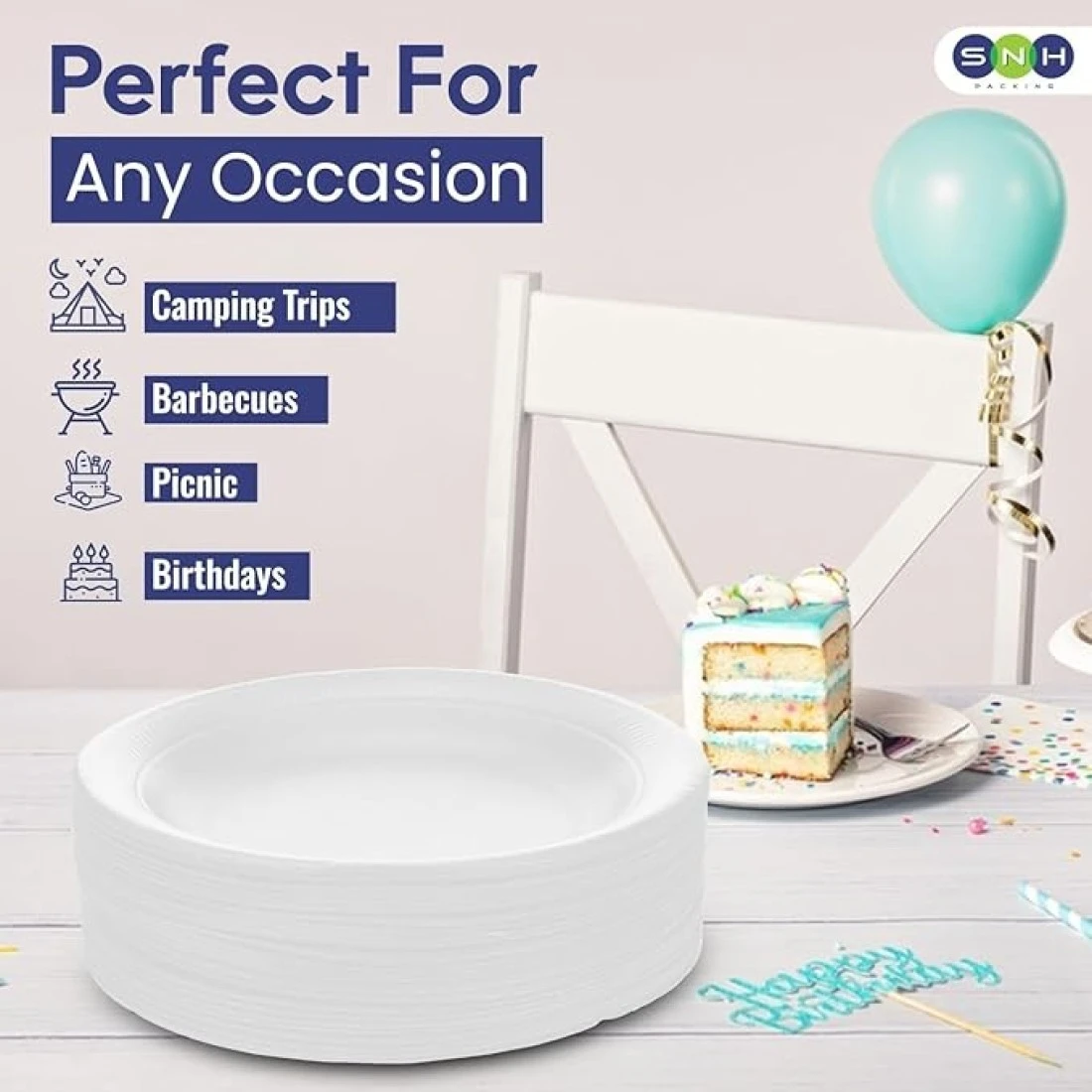 SNH Packing Foam Plate White 7 Inch Disposable, Tableware, Birthday Parties, Office, Home Events, Camping - 25 Pieces.