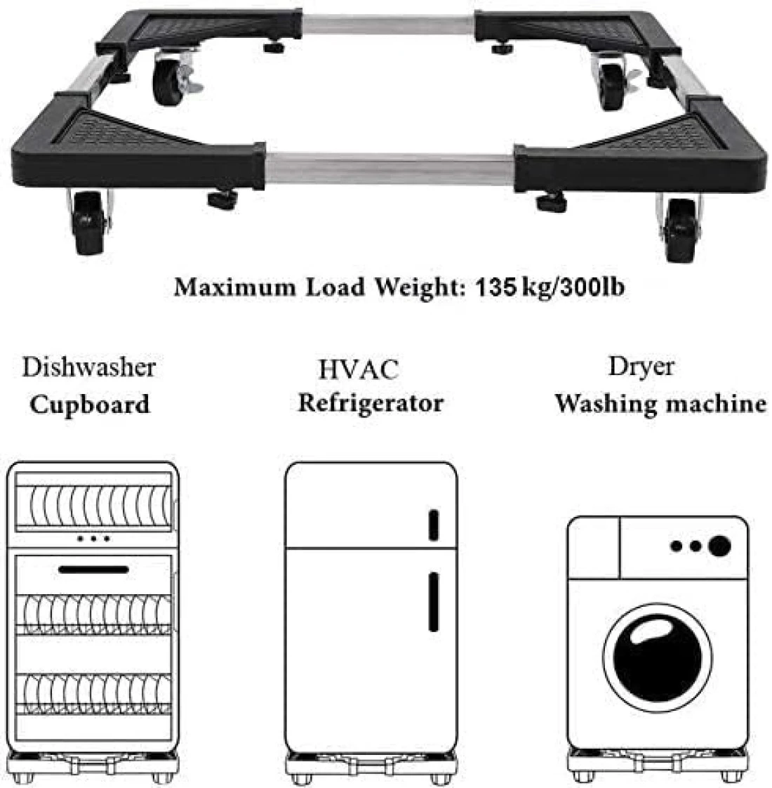 Machine Stand Adjustable Moving Roller for Home Appliances Washing Machines Refrigerators Dryers Dishwashers Heavy Power Tools and Equipment with Wheels