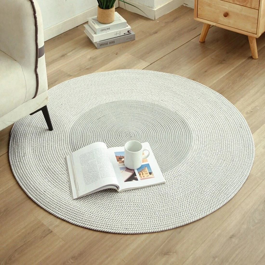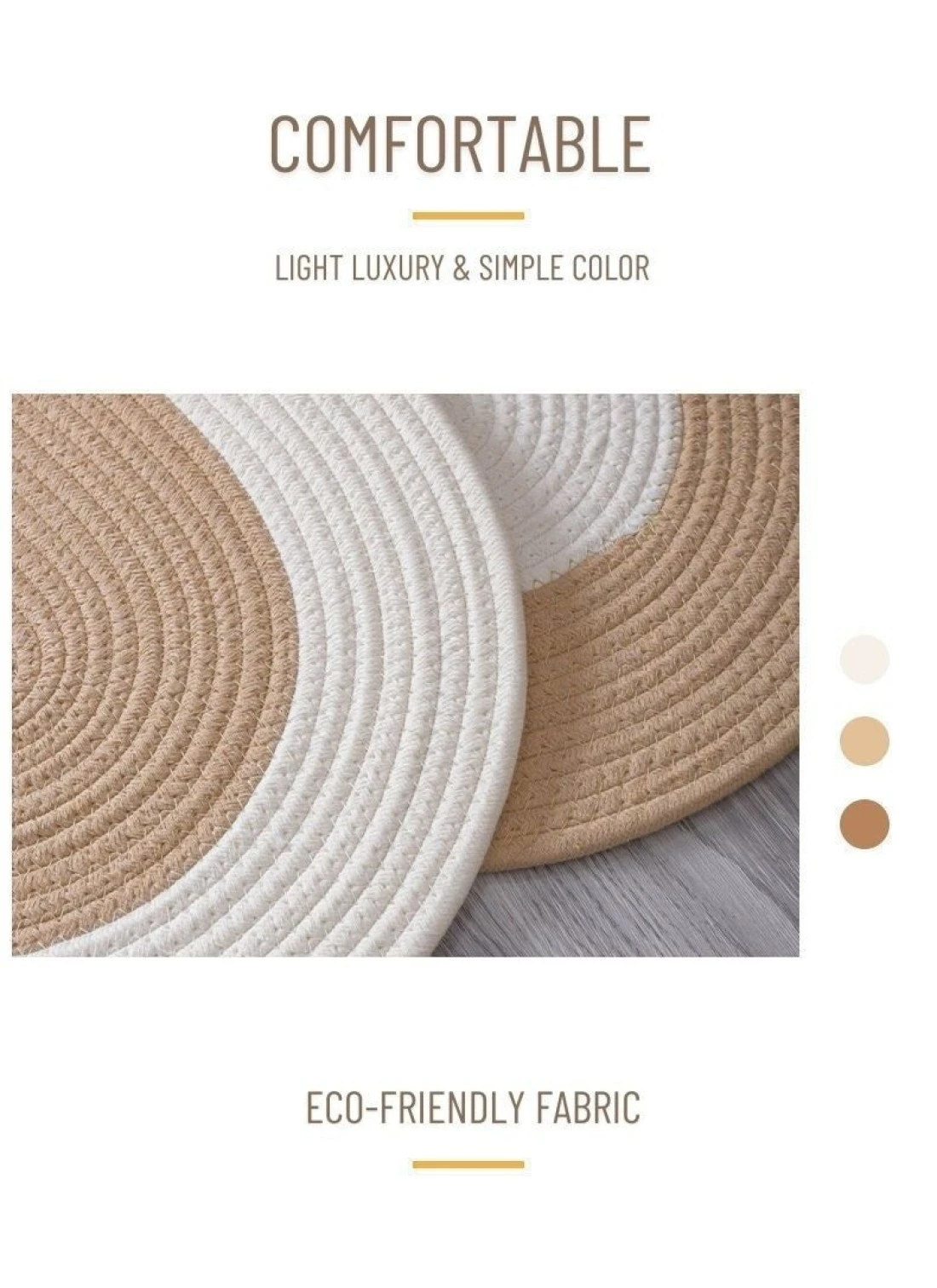 Mei Homecenter Hand Woven Jute Tassel Round Living Room Carpet With Anti Slip Bottom, White (Size 80CM)