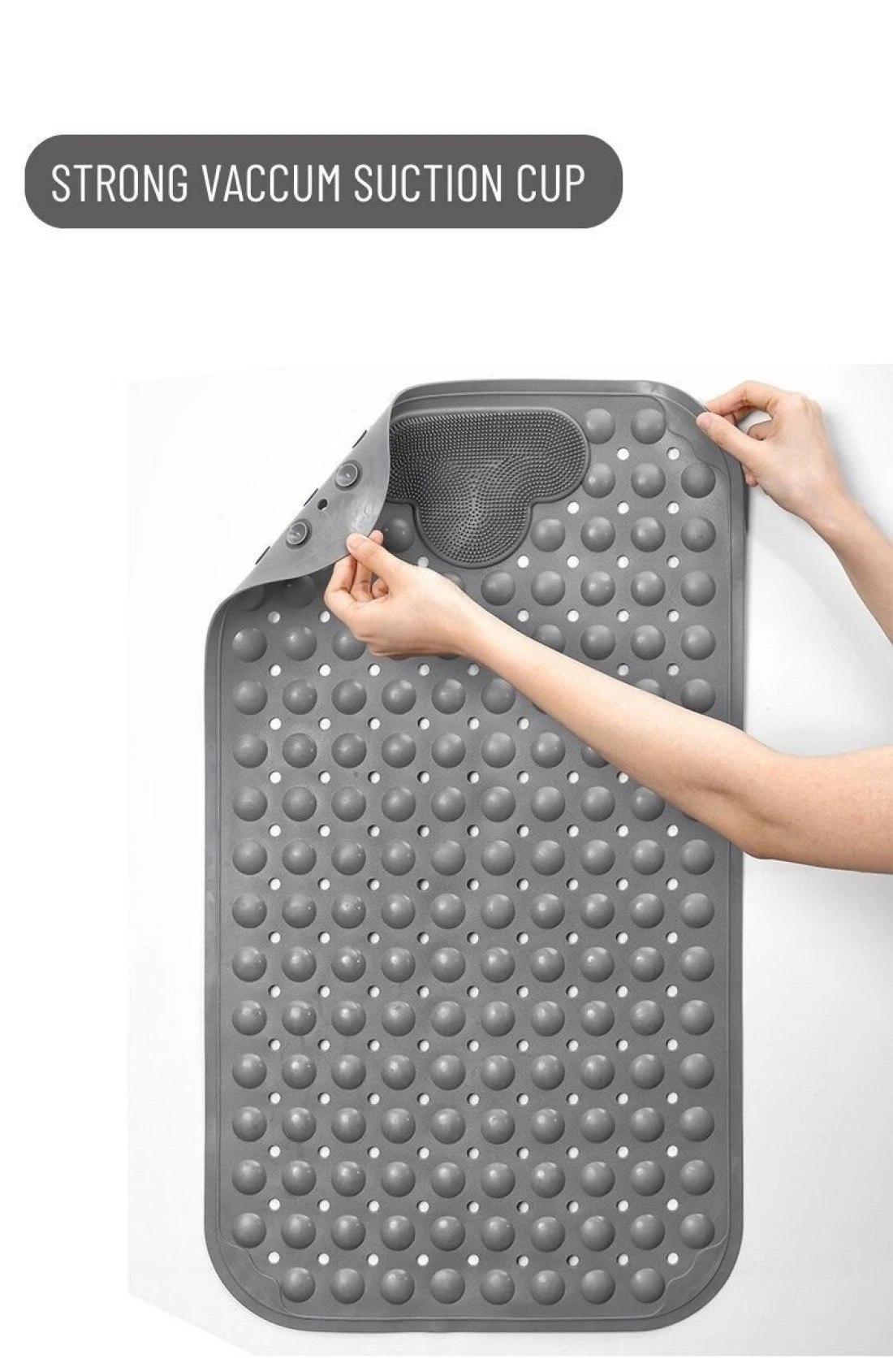 Mei Homecenter Anti-Slip Massage Bathroom Bath Tub Mats with Suction Cup and Drain Hole Quick Drying Shower Floor Mat, Grey (40×70CM)