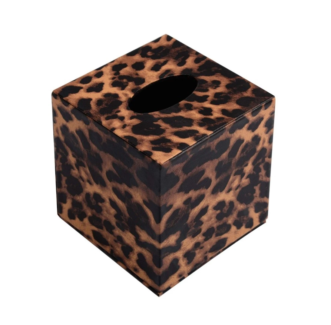 S Forever Home Decor Chic Kleenex Box Holders PU Leather Square Tissue Box Cover Leopard