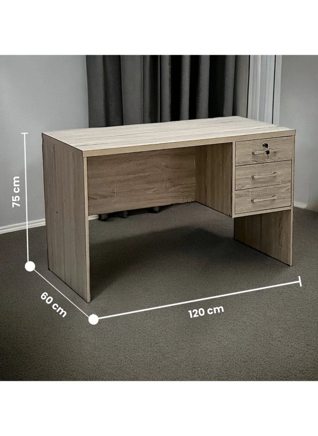 Galaxy Design Wooden Writing Table with Three Drawers, Office Table with Lockable Top Drawer, Computer Desk for Study and Work, Ideal Laptop Table for Home and Office
