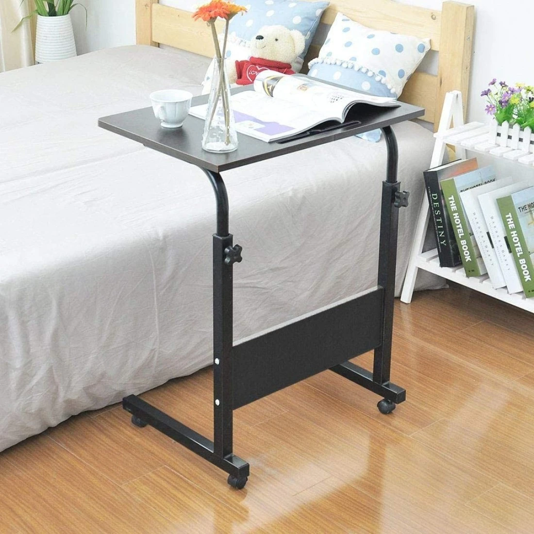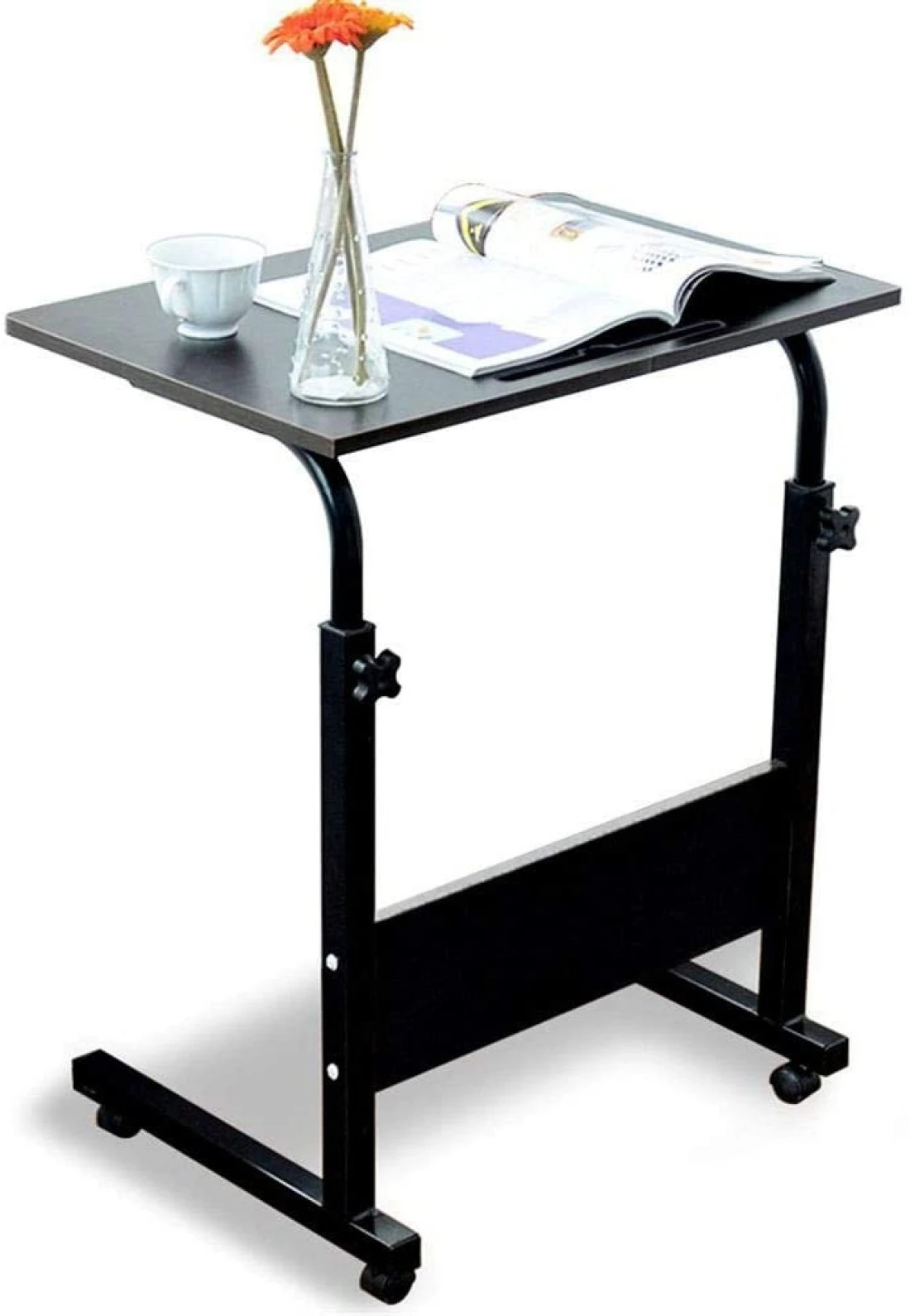 The height of this rolling laptop table is adjustable(71-90cm) to meet different needs, perfect for both adults and kids to use in any ways you want for your home and office, especially side of the sofa and bed.