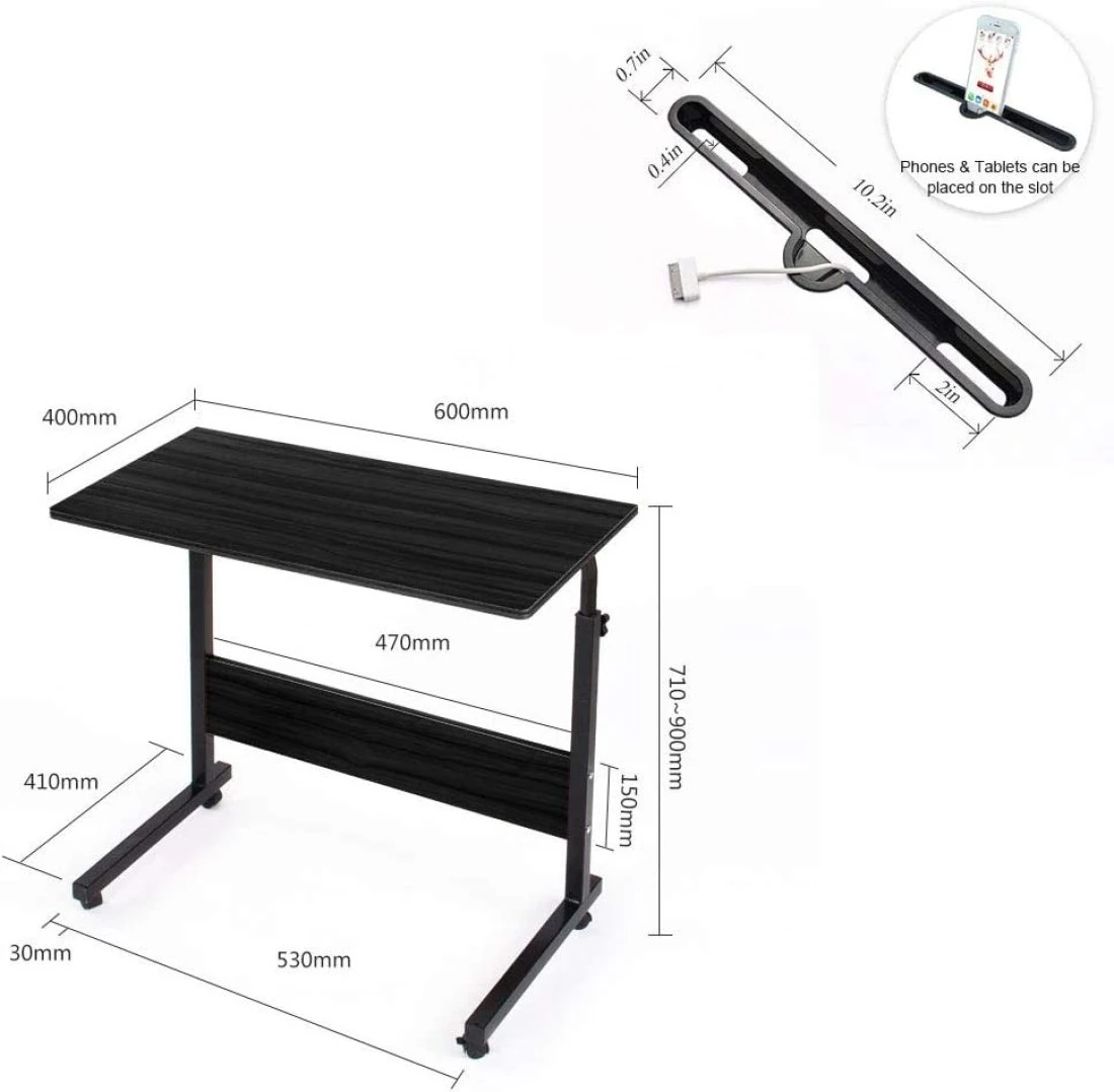 Doreen Mobile Side Table, Adjustable Movable Portable Laptop Computer Stand Desk Worksation With Tablet Slot & Wheels for Bed Sofa 40 * 80cm black(GC1212A)