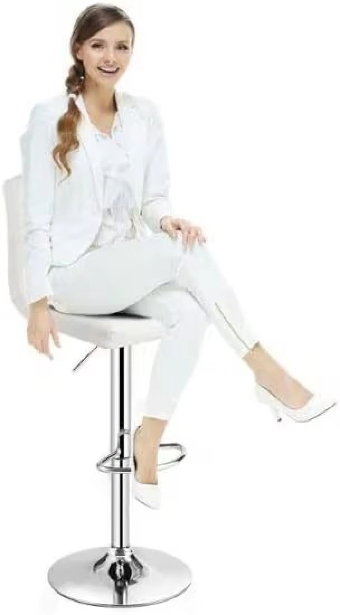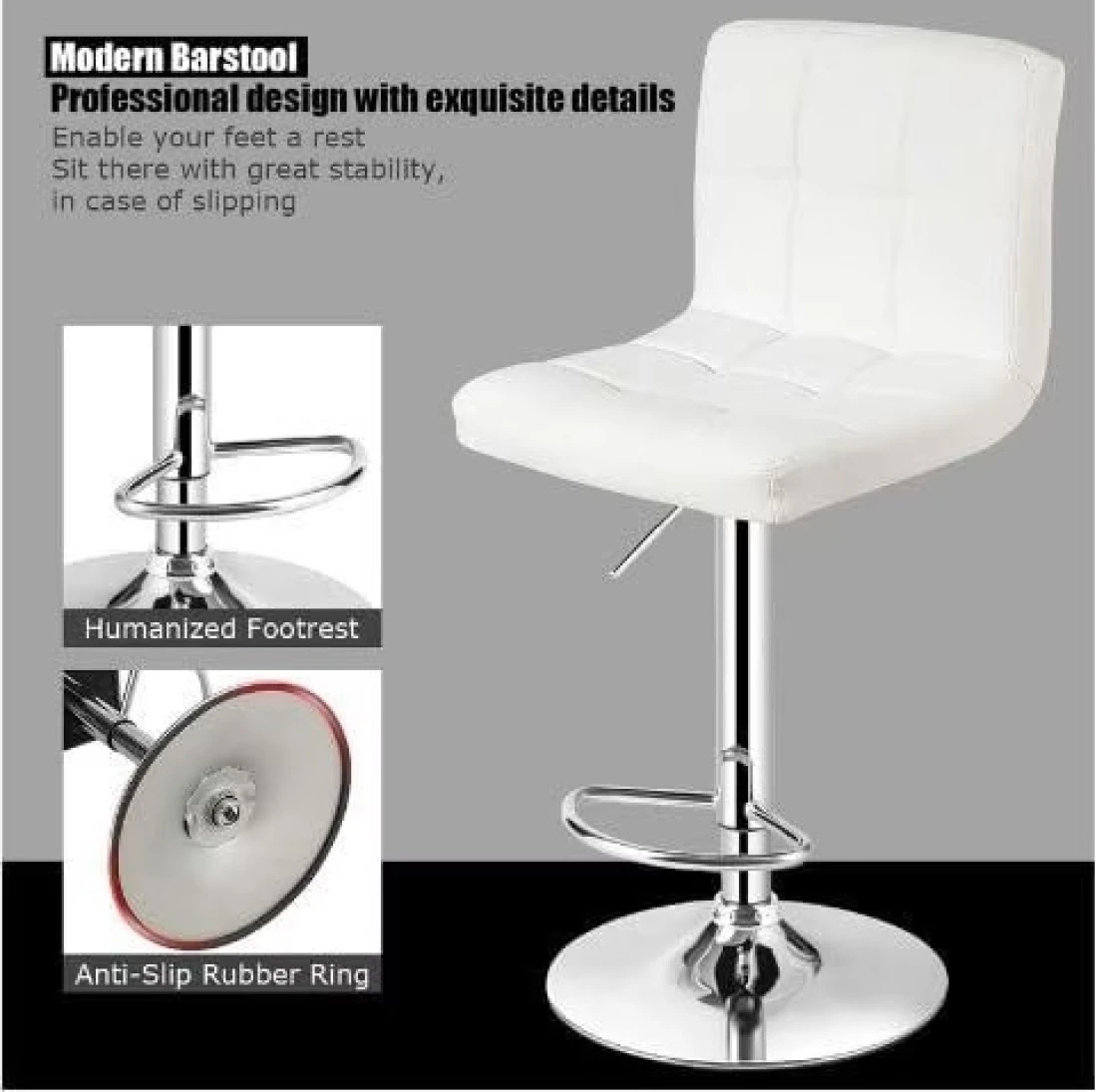 Galaxy Design Adjustable Bar Stools PU Leather Swivel Lift Kitchen Counter Pub Chair White Color - Size ( D x W x H ) 40 x 40 x 110 cm Model - GDF-J201.