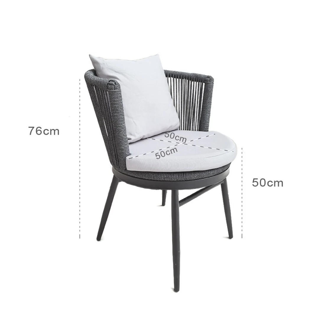 Jeffcoco Furniture Garden Lounge Seat Set,Outdoor Chair with Cushions,Patio Outdoor Balcony Seat,Grey Outdoor Sofa Furniture Handmade Rope (Chair)