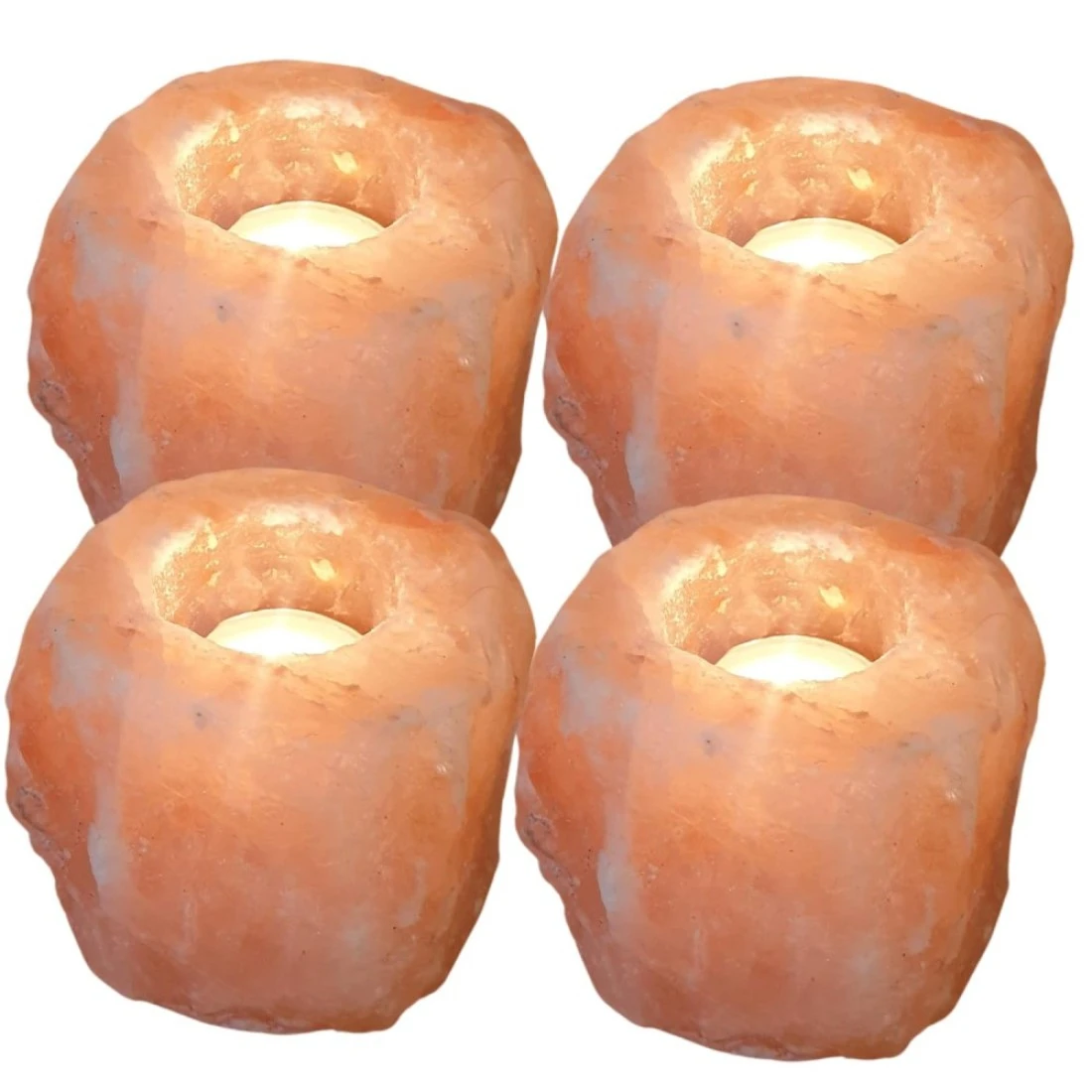 Salt Candle Tealight Holder Natural Shape Original Tea Light Holder Natural Rock Salt 2.1 lbs Each Candle - Pack of 4 Tea Light Holders from Punjab, Pakistan