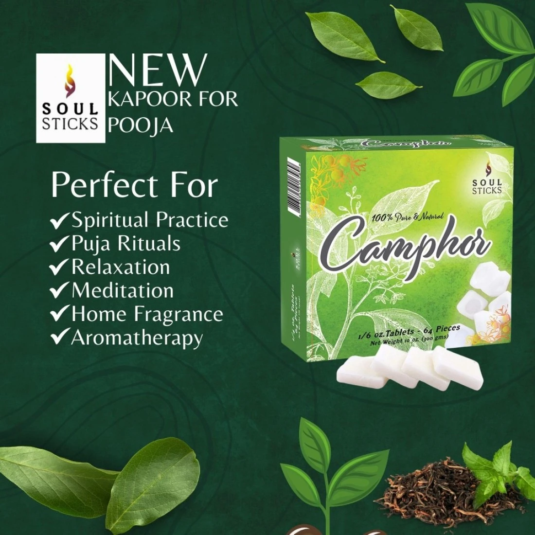 Soul Sticks Natural Camphor Blocks Camphor Tablets 300 Gram 64 Tablets for Aromatherapy Odor Elimination Puja Alcanfor en Bloques Alcanfor Tablets Alcanfor en Bolitas Kapoor for Pooja