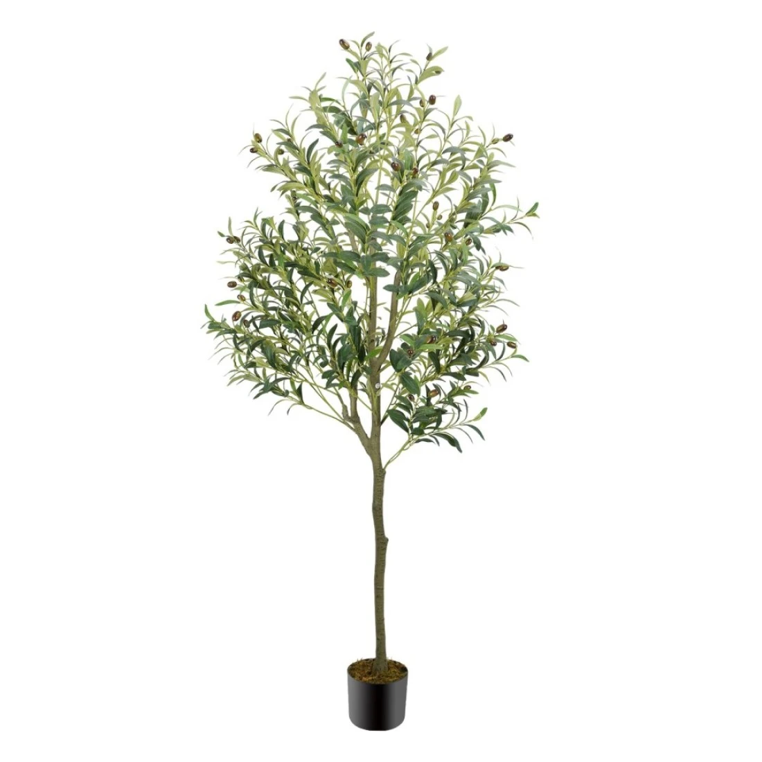 Faux Plants Indoor: Faux olive tree 6 feet has bright and natural colors, natural green leaves and brown olive fruit, real wood trunk and dried moss make your pot look more natural, every detail is 100% authentic olive tree, Package Content: It comes with a 180 cm / 6 feet olive tree indoor, a black potted 7 inches in diameter and 15 inches in height, and a packet of dried moss. Olive tree - symbol of peace - and you decorate them for the festive season in the hall, Artificial Olive Tree: Artificial tree do not need watering and maintenance. It can maintain the natural shape, color and height for a long time, evergreen all the year round, add a strong natural atmosphere to your home, Multi-occasion Decoration: Olive tree artificial indoor is suitable for living room, office, bedroom, hotel, front door, porch, backyard. It can be used as a spring festival decoration for front door, bring a romantic holiday atmosphere to home, Warm Tips: 1. Since the branches of fake olive tree are handmade, there will be a 3 cm gap in size, don't buy if you mind. 2. If the branches were squeezed, please adjust, extend and adjust the shape of the leaves, to achieve the desired fluffy effect, Note: 1. For keep standing, it is recommended to place the fake floor plant in a larger planter. 2. Please put the fake tree fake plant tall in a ventilated and dry place for 1-3 days after receiving it, the smell will be eliminated