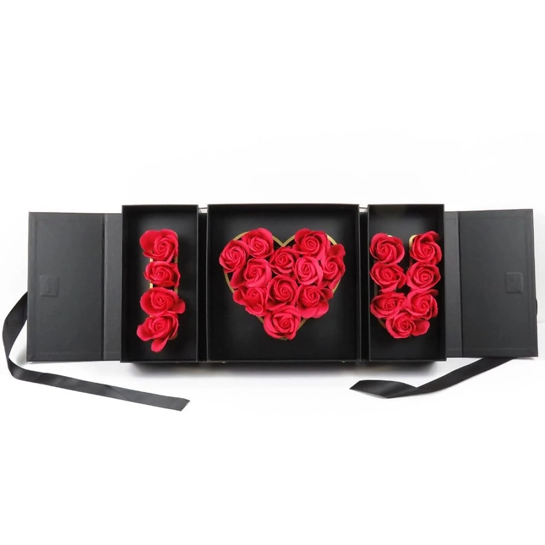 QRQR Empty I Love You Fllower Mothers Day Valentines Chocolate Sweets Arrangement Decorative Box With Green Plant Floral Foam Holder Black ILOVEU24