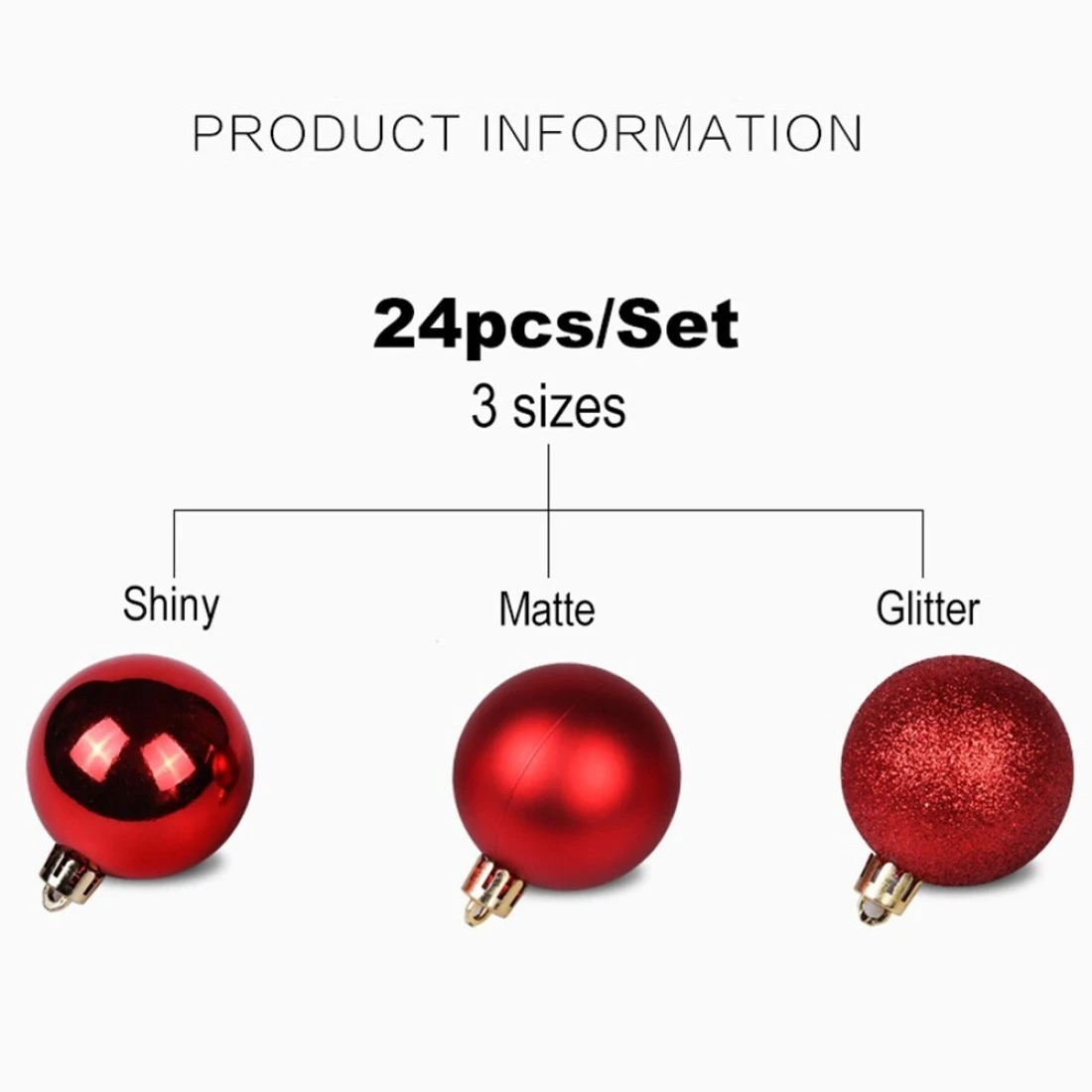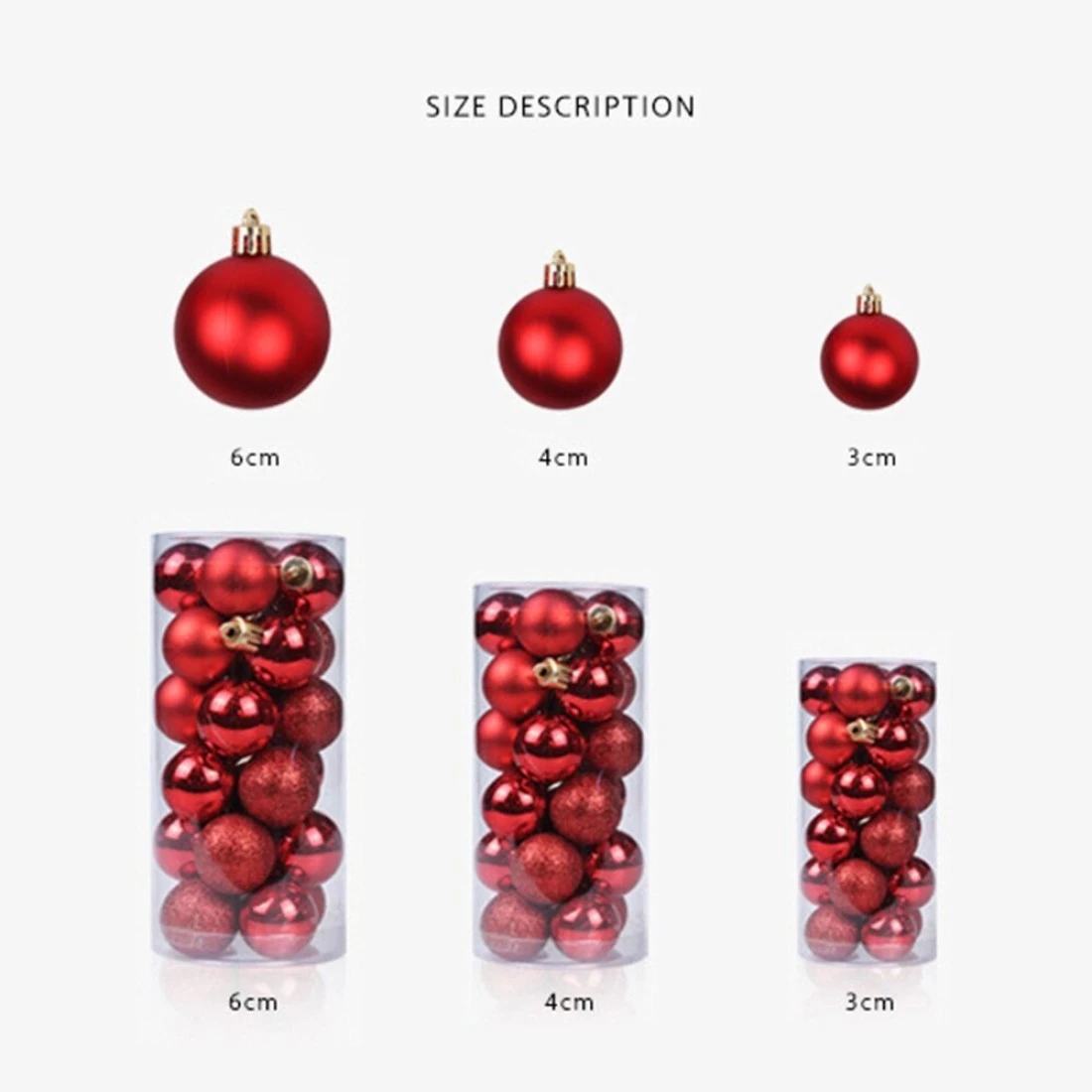 Generic-24pcs/lot 3/4/6cm Christmas Tree Decor Ball Bauble Xmas Party Hanging Ball Ornament Decorations for Home Christmas Decorations Red 3CM