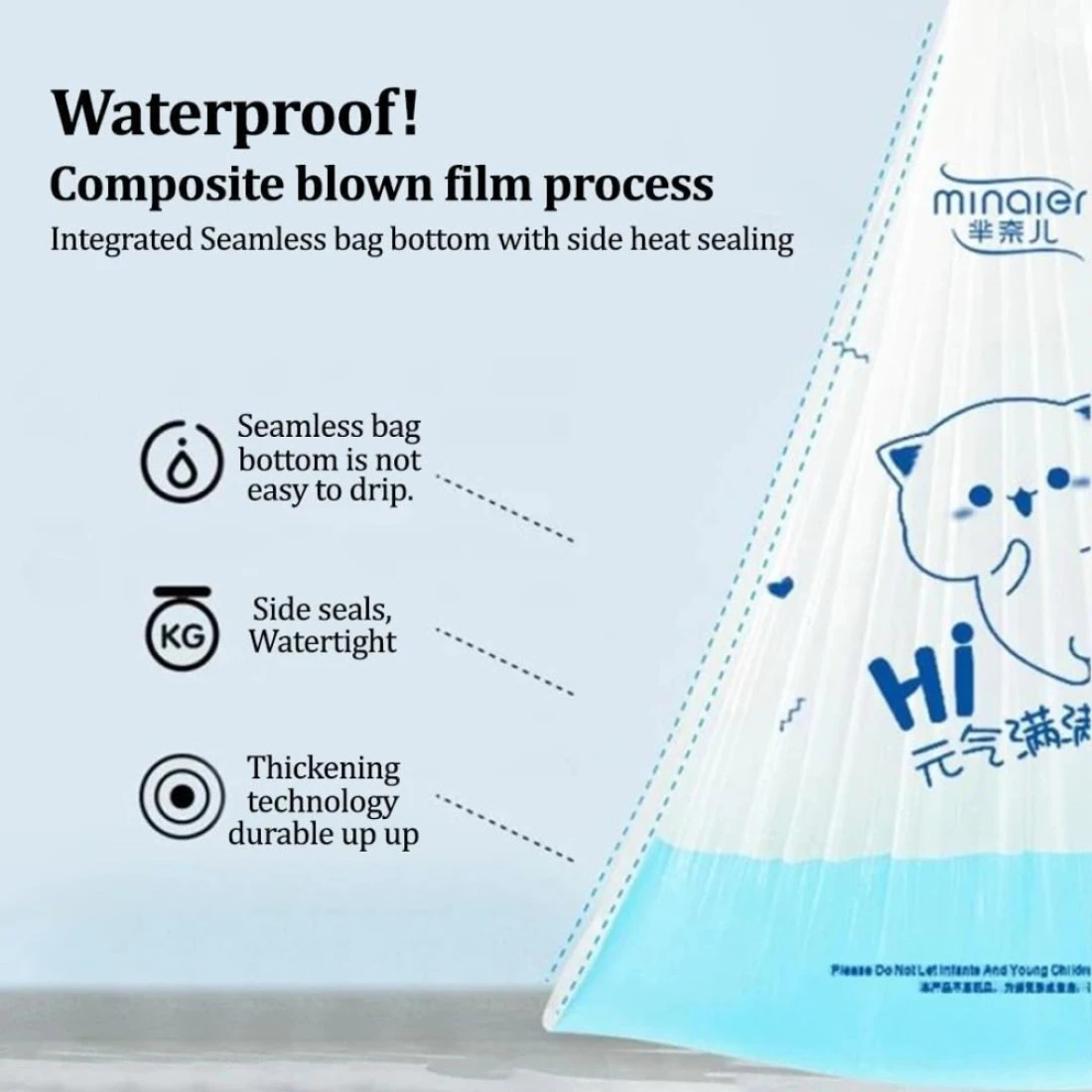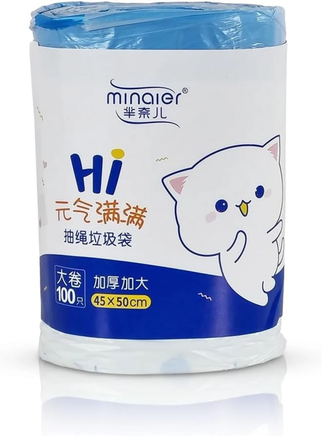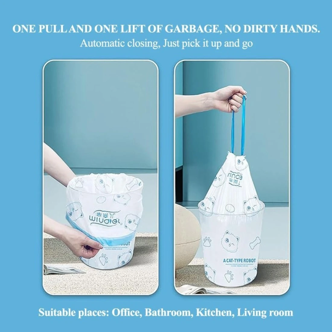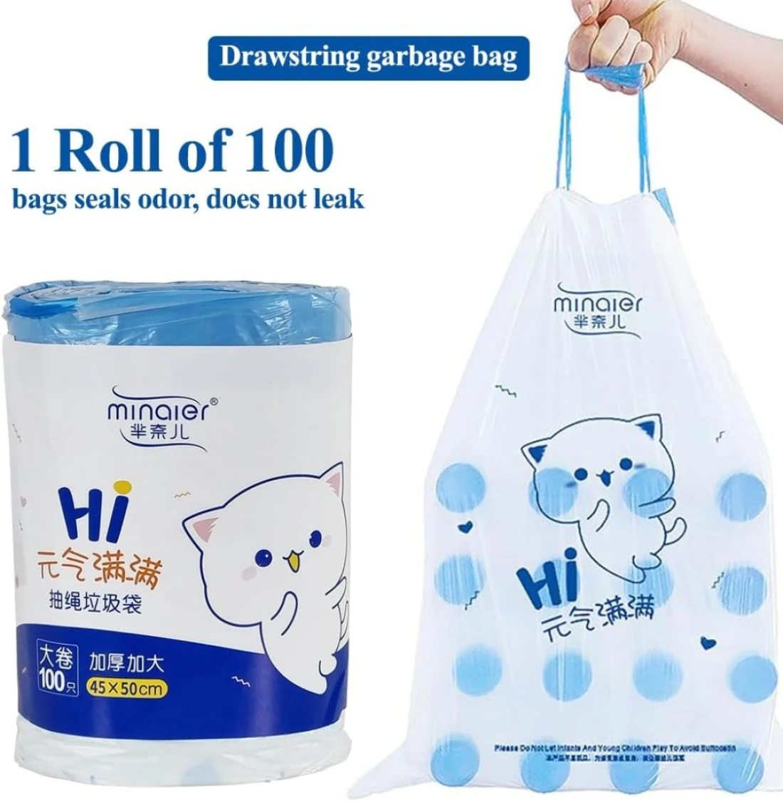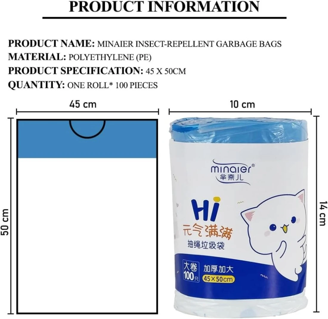 Trash bags with Drawstring and Break point, Heavy-duty garbage bags for Office, Bathroom, Kitchen, Living room, Ideal for medium-sized bins, 100 Counts 45x50cm (White)