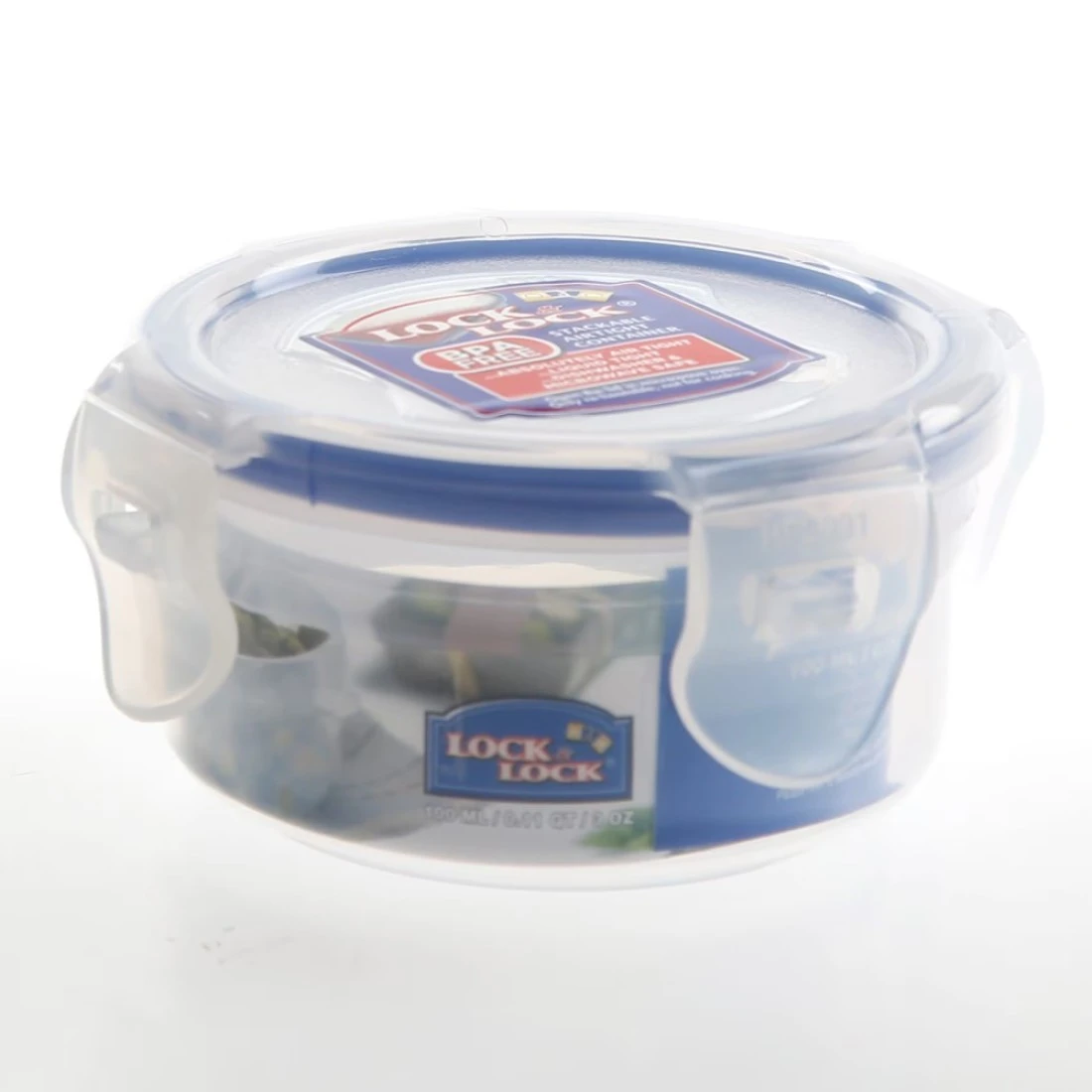 Lock & Lock Classic Stackable Airtight Round Food Container Clear/Blue 100ml