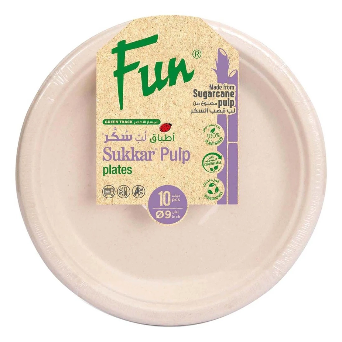 Fun Green Track Sukkar Pulp Round Plates White 9inch 10 PCS