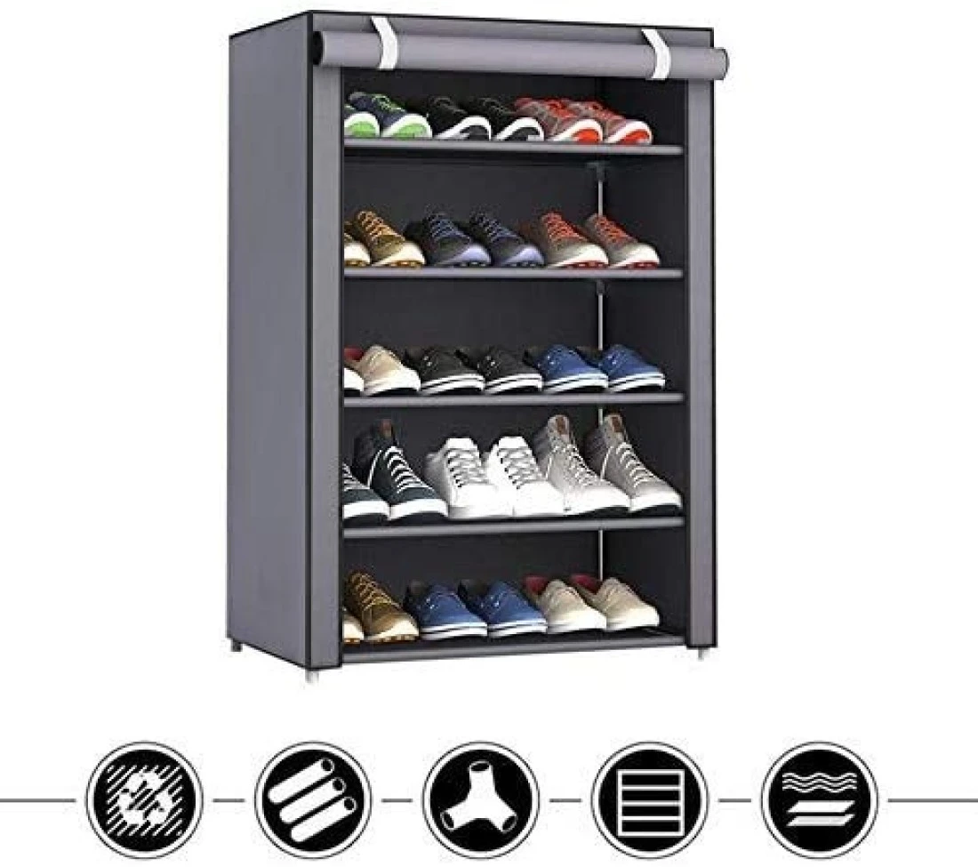 5-Layer Stylish Shoe Organizer, Shoe Rack for Entryway Hallway Storage Furniture with 5 Open Shelves Perfect for organizing shoes(Grey)