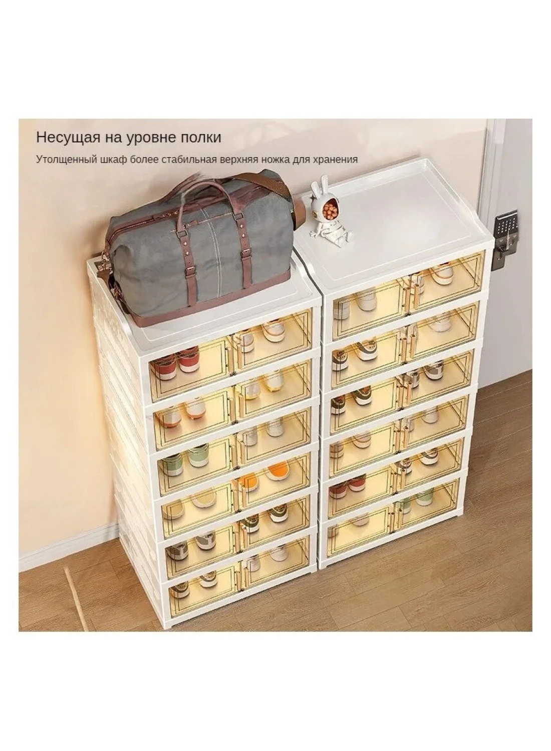Foldable Shoe Rack – 6-Tier Plastic Shoe Shelf Organizer for 12 Pairs – Stackable Shoe Cabinet with Collapsible Storage Bins & Doors for Closet, Entryway, Bedroom & Hallway