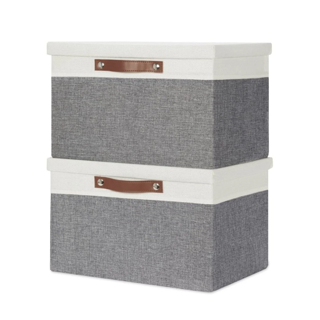 Temary Collapsible Storage Bins Storage Boxes with lid 2 Pack Storage Baskets with Lid Decorative Storage Clothes Organizer Bins with Handles WhiteGray 15x11x95inch