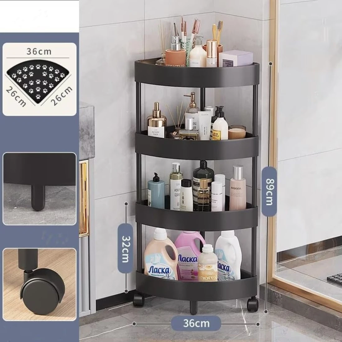 4-Tier Rolling Storage Cart,Corner Shelves, Multi-Purpose Organizer for Bathroom, Office & Kitchen, Plastic Shower Caddy Organizer Shelf, Easy to Assemble & Move (Black)