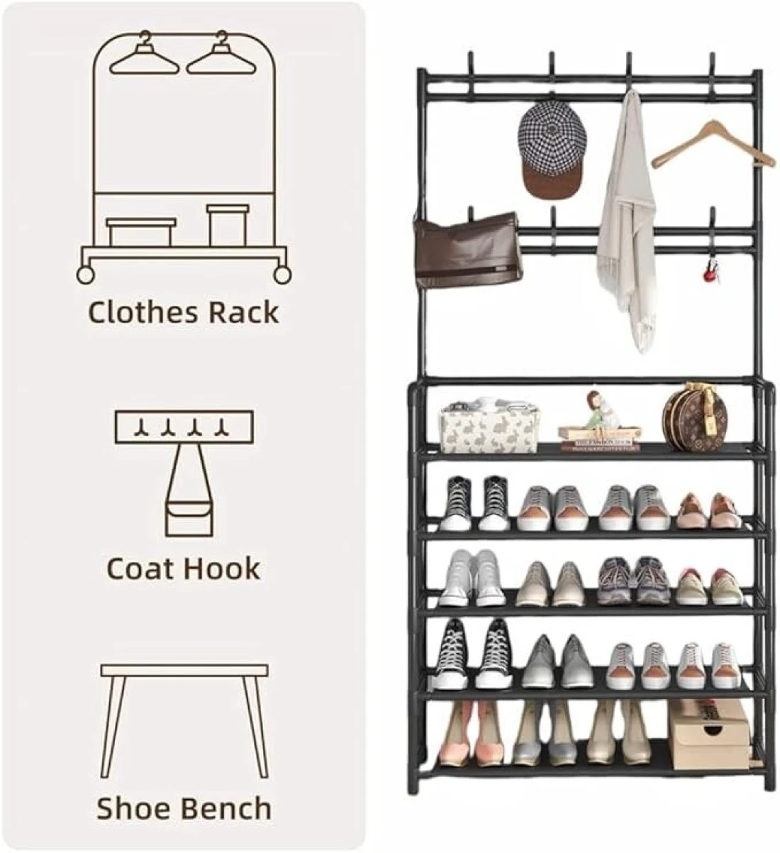 Shoe Racks Storage , Coat and Shoe Rack , Coat Rack with Shoe Storage , Upgrade 5 Tier Shoe Rack , Black Shoe Rack , Shoe Storage Organizer , Shoe Shelf with 8 Hooks for Bedroom , Hallway , Office