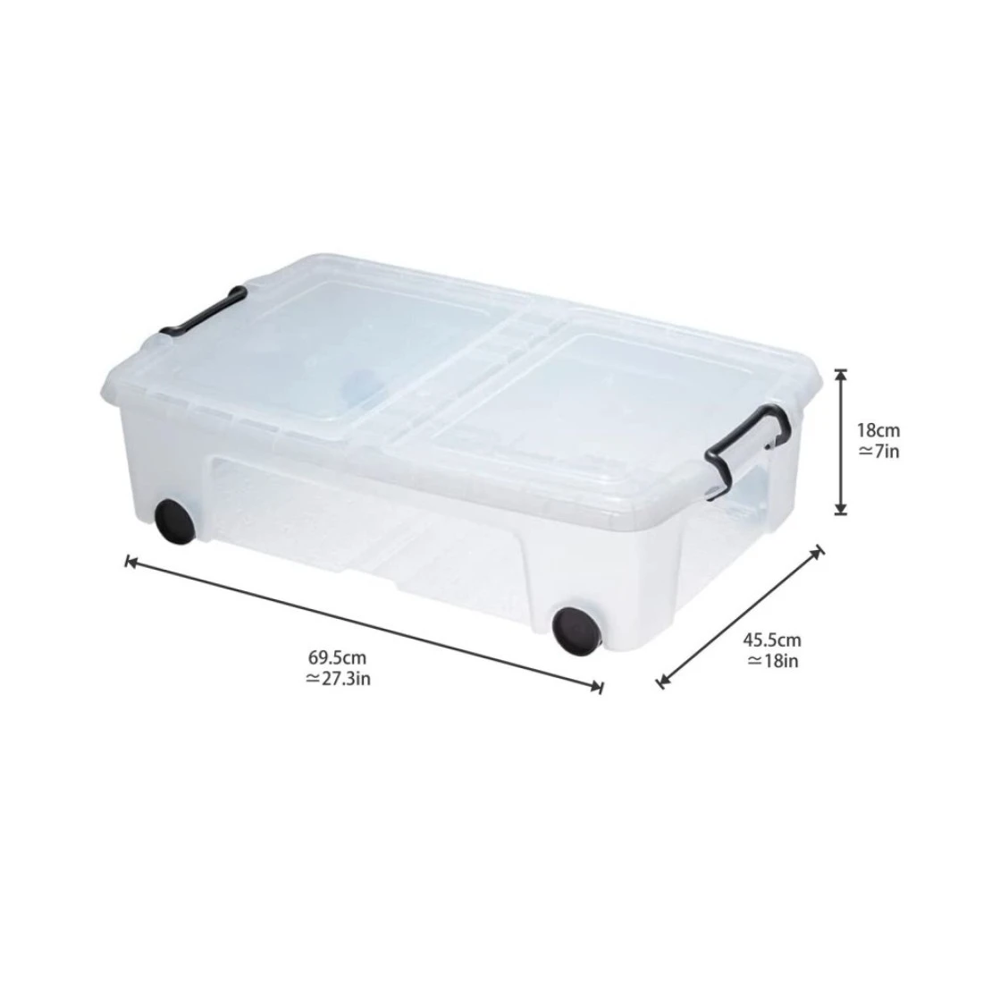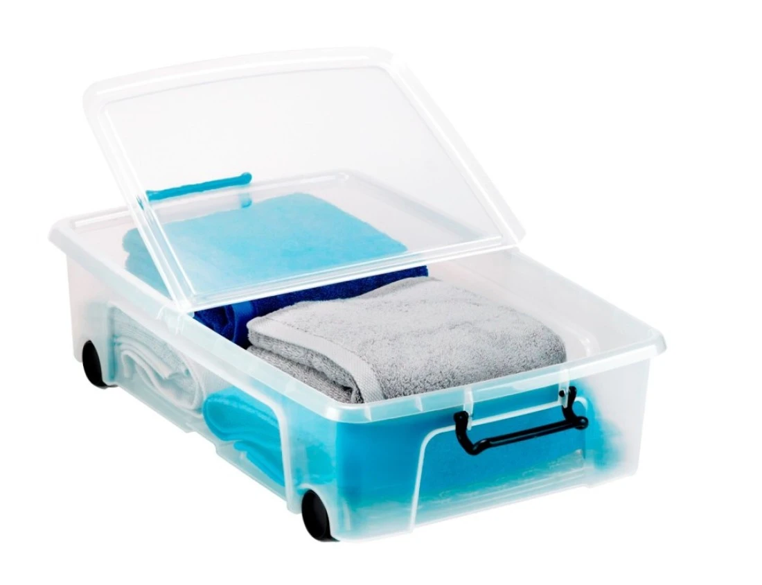 Strata, Made in UK, Plastic Underbed Storage Box with Wheels, Storage box with Lid and Handle, 35 liters- 69.5 L X 45.5 W X 18 H cm, STR-XW696-CLR/CLR-EX