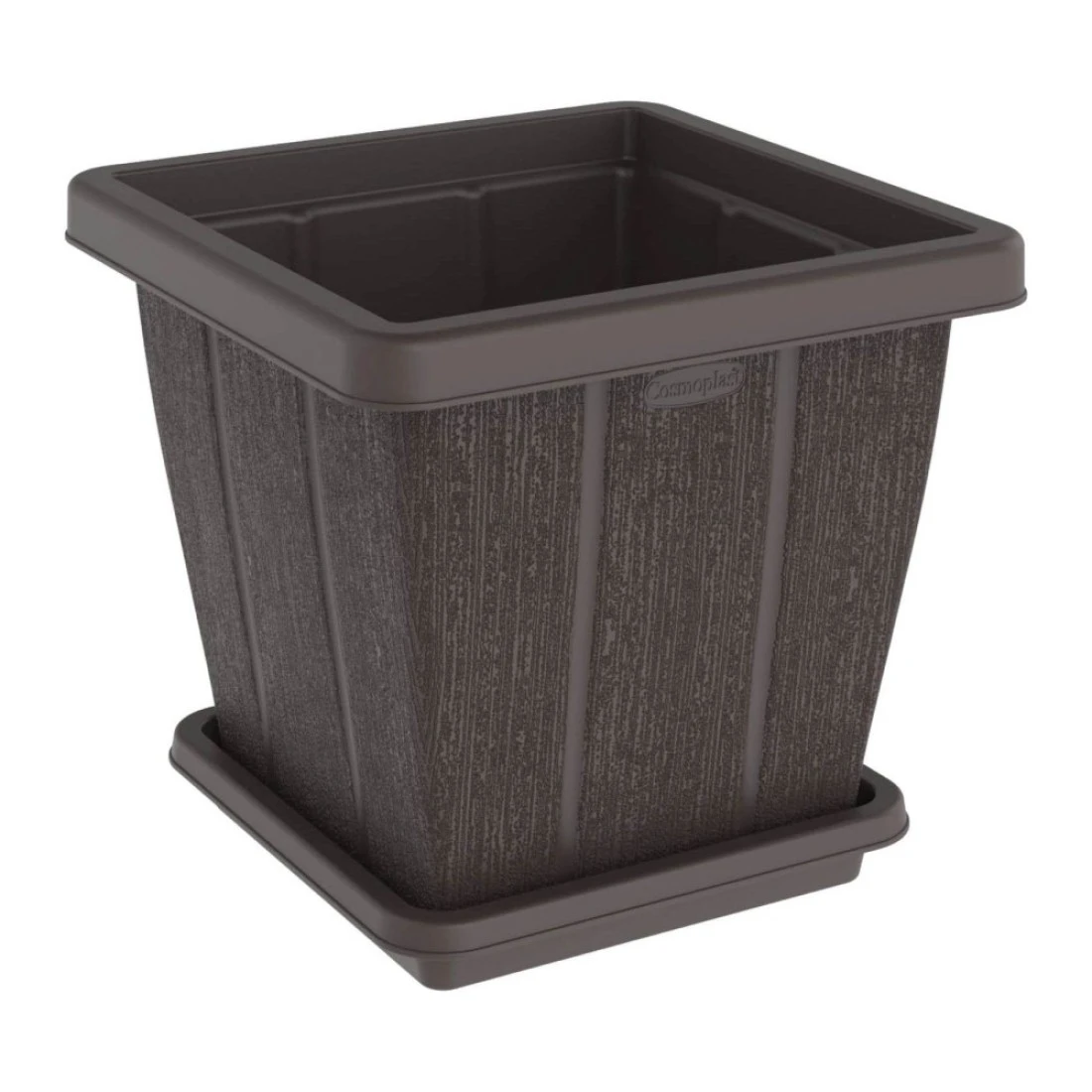 Cosmoplast Cedargrain Square Planter With Tray Dark Brown 45L