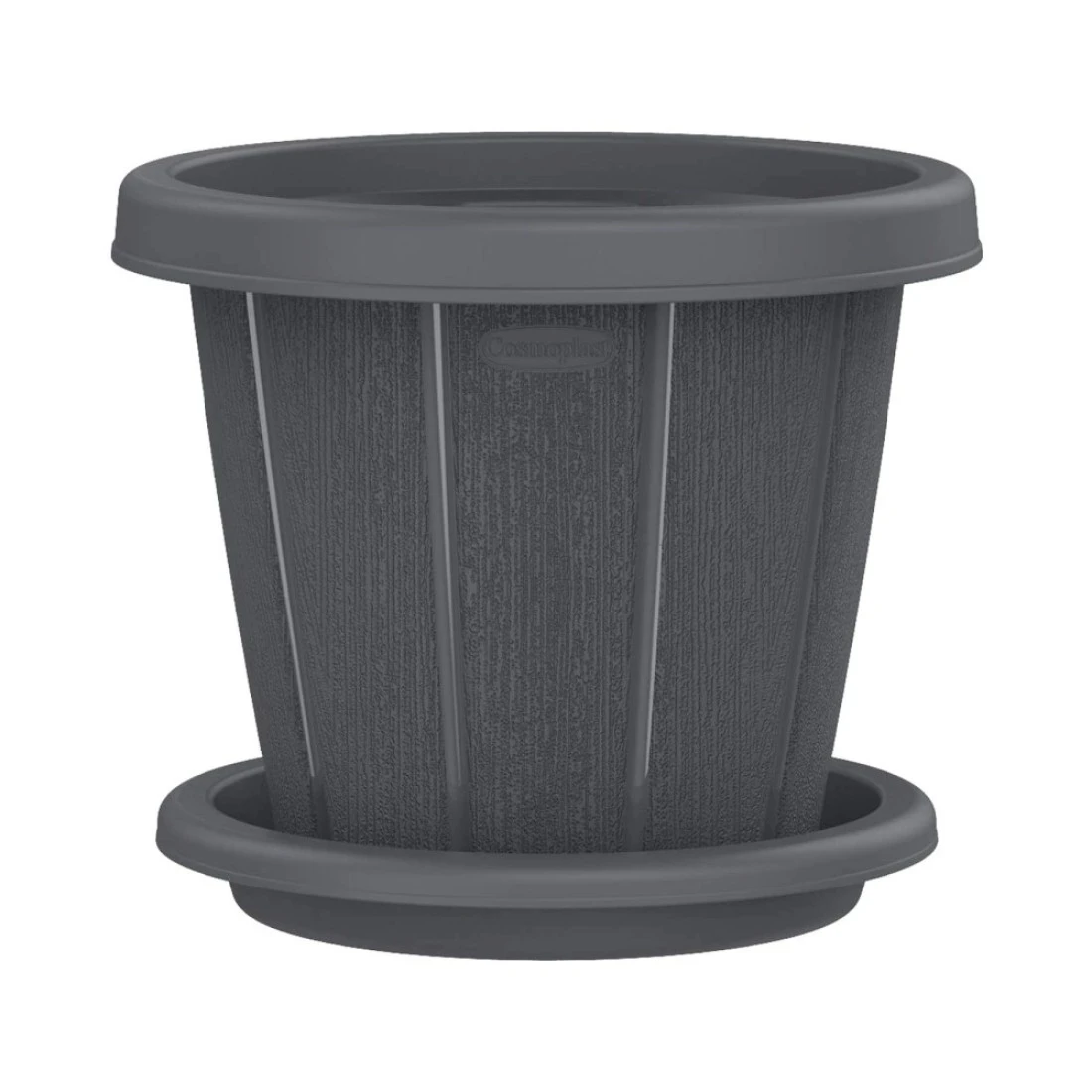 Cosmoplast Cedargrain Flower Pot With Tray Dark Grey 8inch