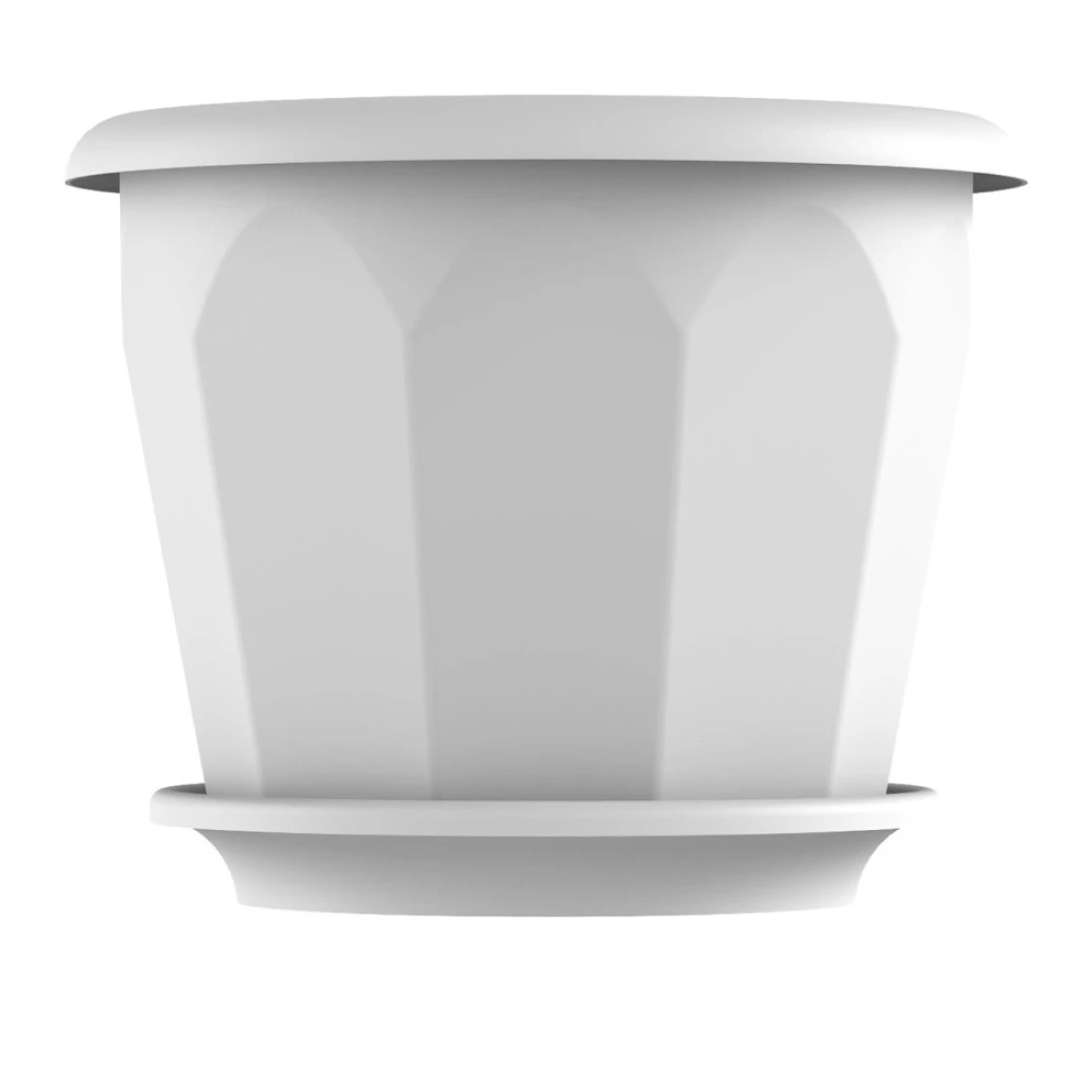Cosmoplast Hexagonal Flower Pot With Tray White 35cm