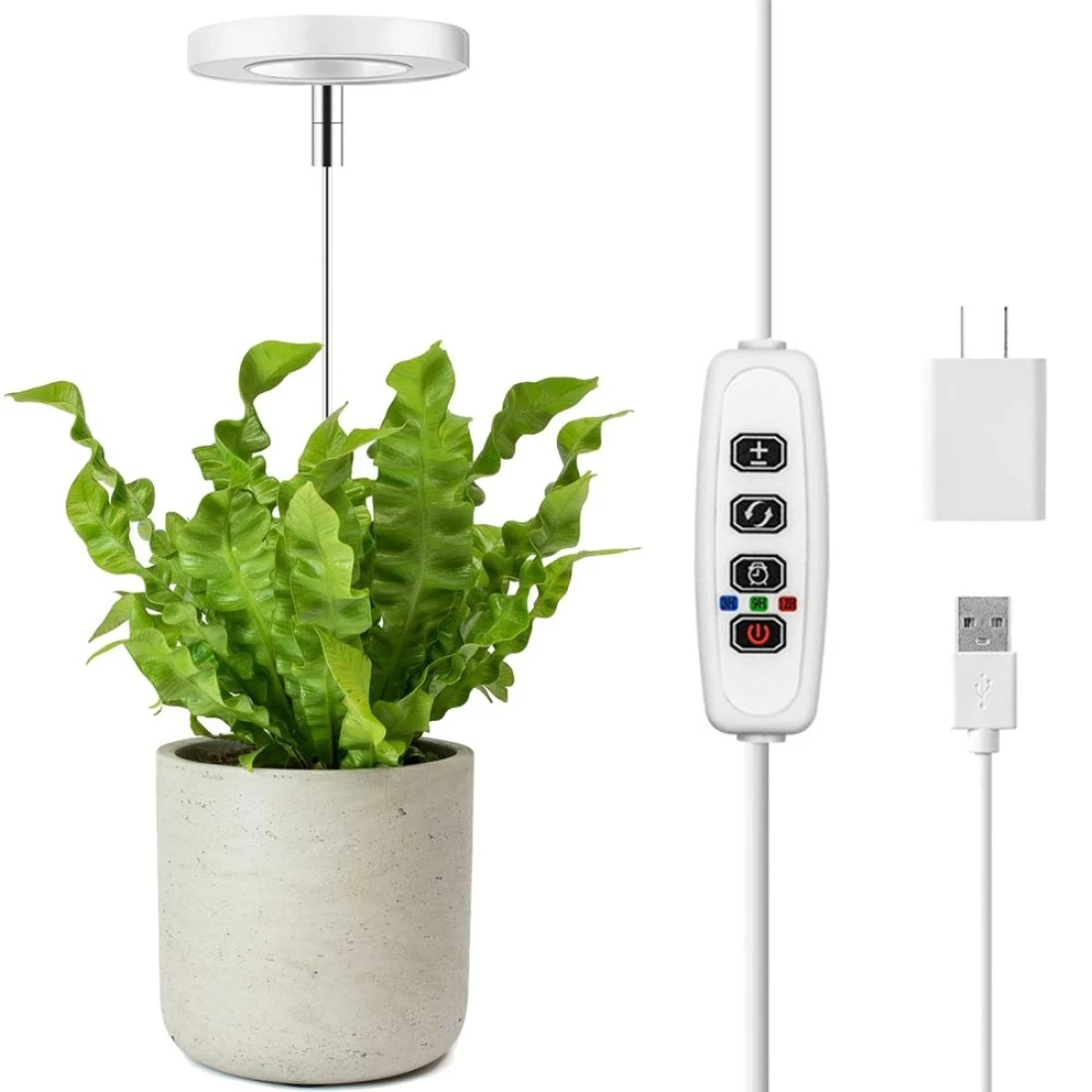 🌻ã€High Efficiency Full Spectrum LED Plant Grow Light】This plant grow light features 48 LED beads that emit all wavelengths from 380nm to 800nm - just like natural sunlight. Three colors can be adjusted at will to accelerate photosynthesis and plant growth at all stages more effectively. It is the ideal artificial light for microgreens, potted plants, and succulents., 🌻ã€Auto On/Off Timer】 This indoor plant grow light is equipped with a built-in timer with 3 mode cycle timing settings that will stay on for 3/6/12H, then off for 21/18/12 hours and will automatically turn on and off at the same time the next day without unplugging/replugging. It'll take care of your plants while you're at work or on vacation, easily and conveniently!, 🌻ã€9 Levels Dimmable】Our plant lights have more new technology LED diodes to make them brighter and more efficient. There are also 9 levels of brightness settings (20%-100%) to meet the lighting requirements of each plant at different stages, so you don't have to worry about the brightness being too strong or too weak., 🌻ã€Easy to install and height adjustable】Simply stick it in the potted plant, no need to clip/clamp it to the surface, or you can use the base. The pole can be telescoped up and down (6.6-24.8 inches), which is convenient to keep plants growing at a reasonable height and will cover a large area or more plants when the pole is extended., 🌻ã€Multiple Power Supply】LED plant grow light is equipped with high quality 5V 1A USB adapter, which is beautifully designed and safe to use. Also the plant grow light is suitable for most devices that support USB interface, such as power supply, USB charger, mobile power, monitor, AC adapter, PC and laptop.