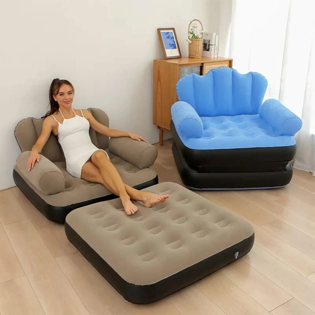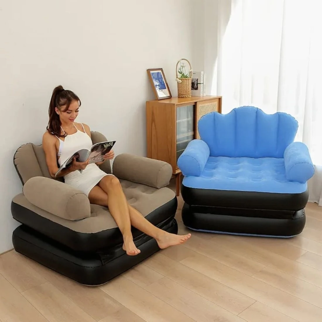Multifunctional 5-in-1 Inflatable Sofa with L-shaped Armrest for indoor & Outdoor