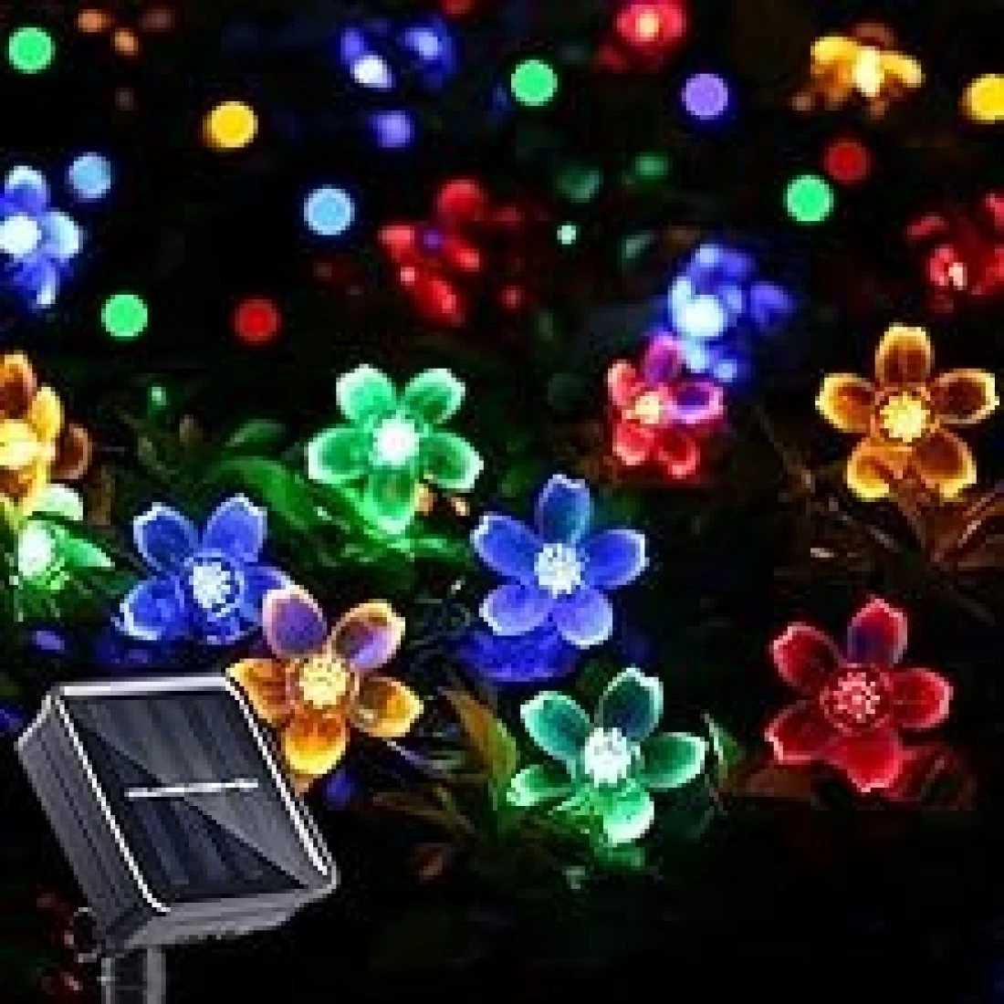 WVHTHVW Solar Light Outdoor Garden Lights, 7 Meters 50 LEDs, 8 Flash Modes with Tail Plug Connectable Cherry Flower Decoration Novelty Light for Party, Patio, Wedding, Home and Garden (Colorful)