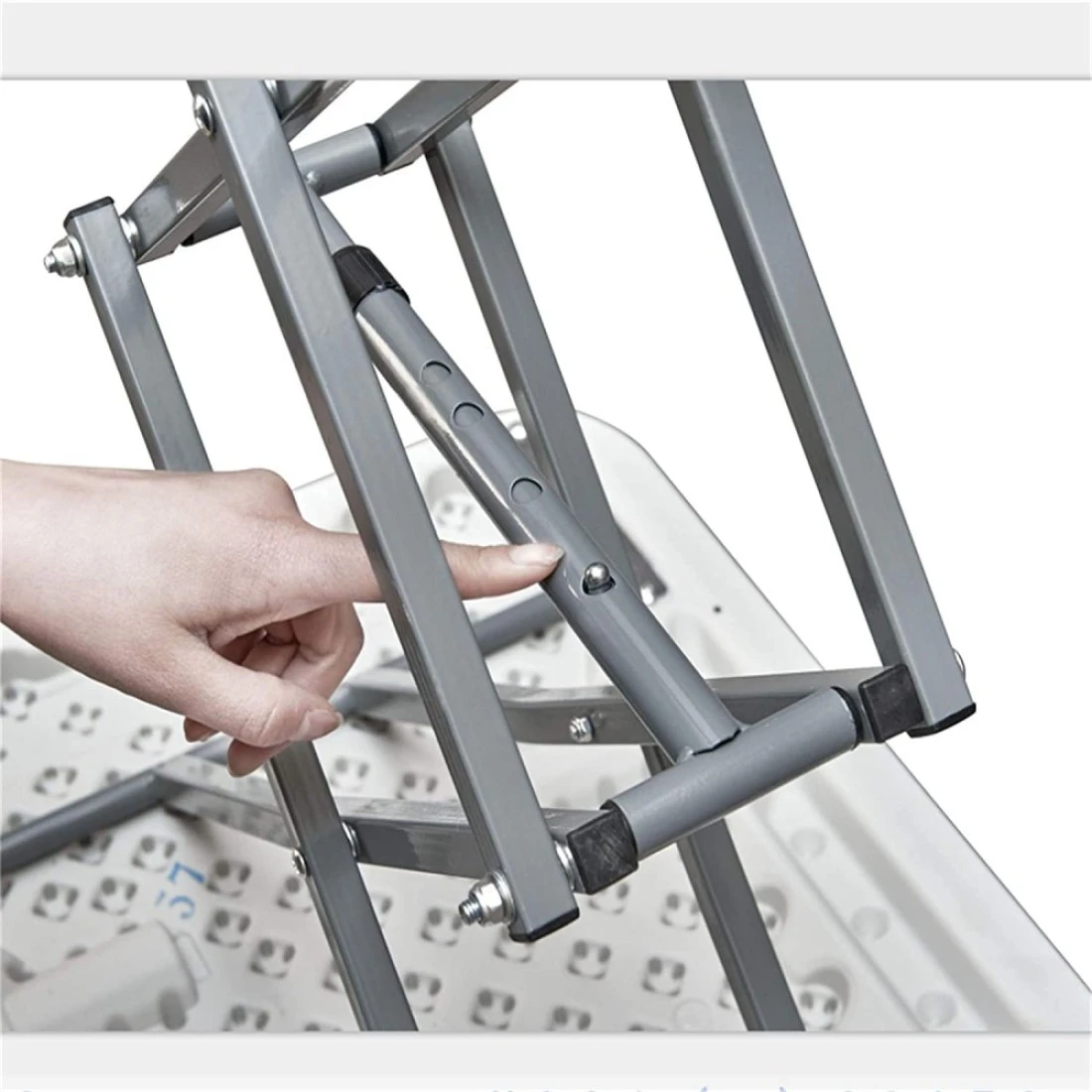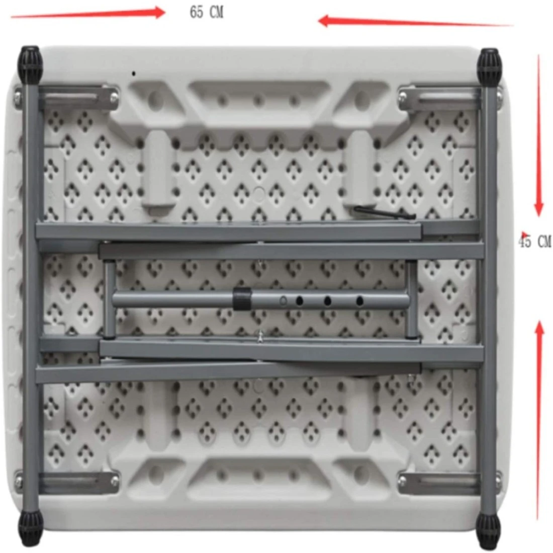 Product material: high strength stainless steel tube frame bar, a new high strength and high toughness abs plastic plate. Dimensions(expanded): 65 x 45 x 59-64 cm. Product weight: 4 kg. 3 level adjustment