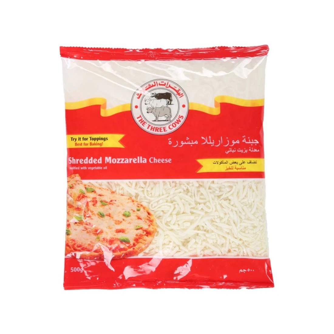 THE THREE COWS SHREDDED MOZARELLA CHEESE RED 500GM