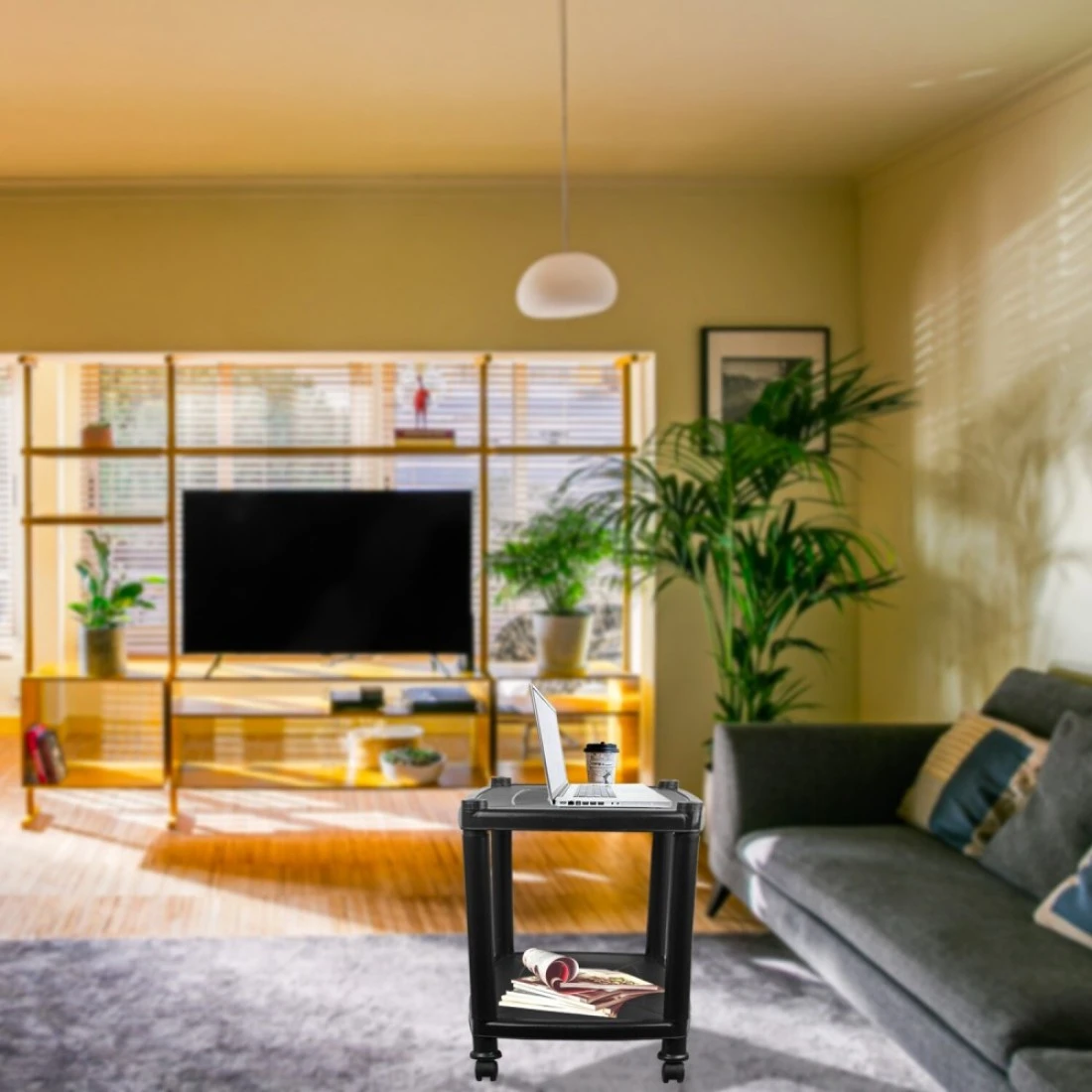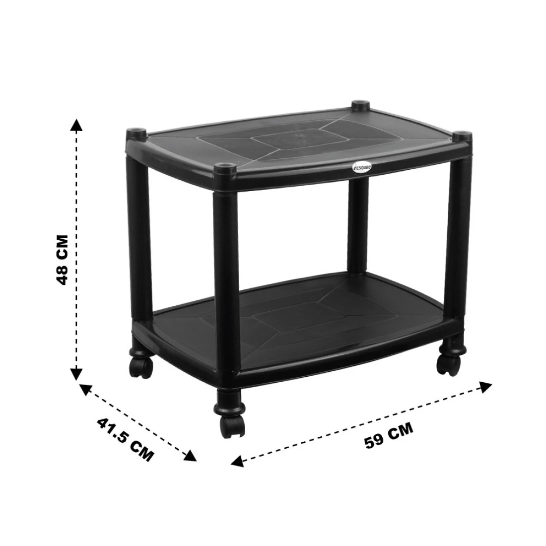 Esqube Delta Plastic Glossy Trolley Table (Black)