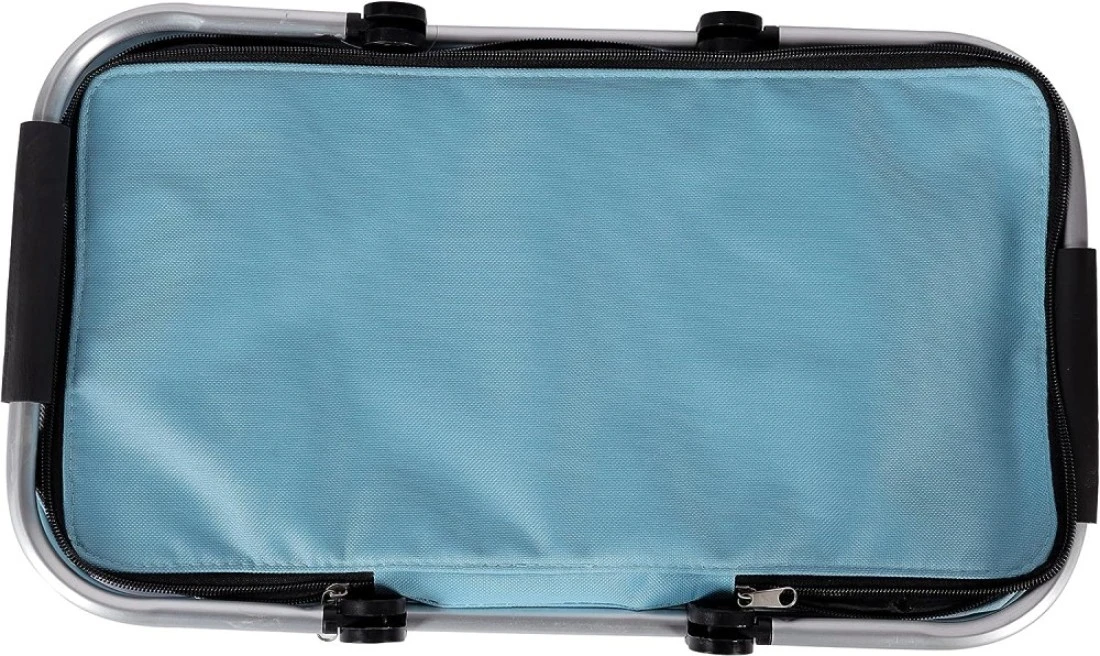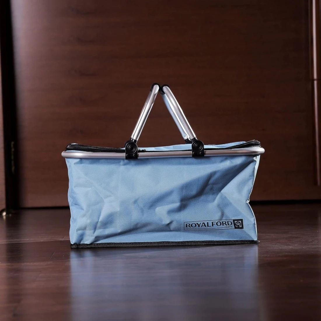A good-quality insulated grocery and picnic basket made from a durable polyester bag with aluminum handles. It has a large capacity of 30 liters and is suitable for grocery shopping, outdoor picnics, storage, etc. The basket has an elegant and sleek design and is highly durable and long-lasting. The basket folds flat for easy transport and storage. Product material: Plastic.