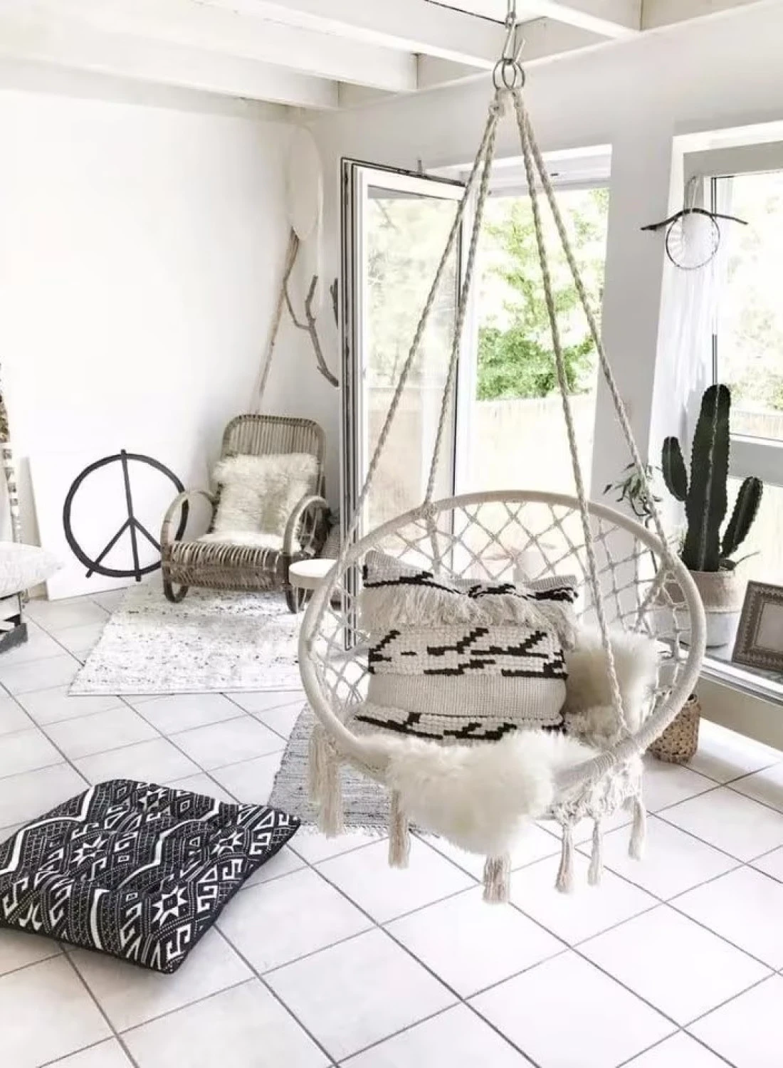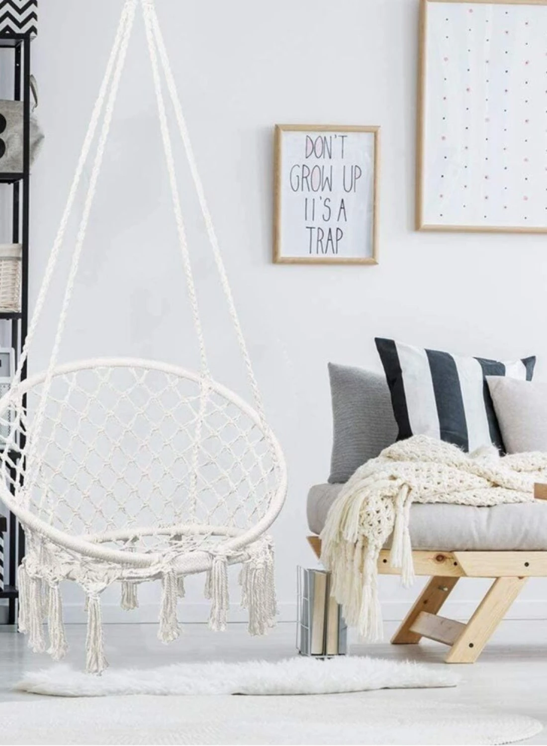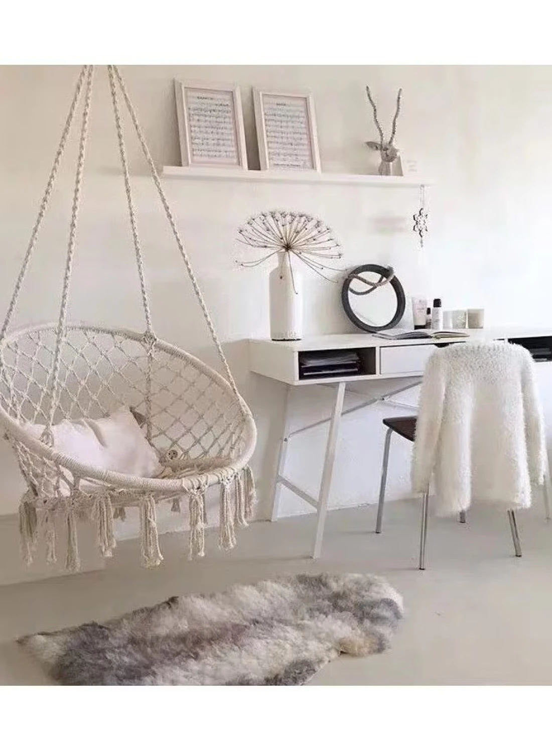 Elevate your relaxation experience with Hammock Chair. This beautifully crafted macrame swing chair is made from high-quality cotton rope, ensuring both comfort and durability. With a maximum load capacity of 150kg, it is sturdy enough for everyone in the family. Whether you want to curl up with a good book in your garden, enjoy a sunny afternoon on your patio, or add a unique touch to your indoor decor, this hammock chair is the perfect solution.