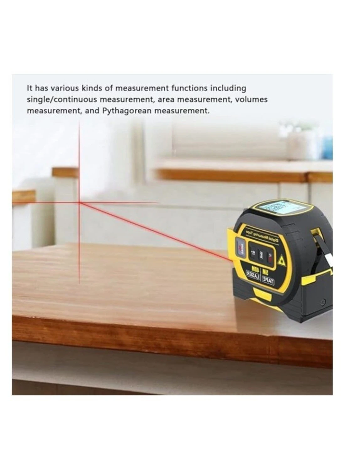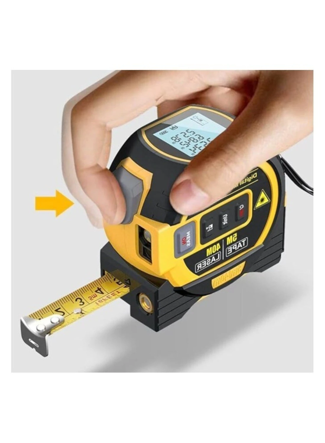3-in-1 Convenience: Combines laser rangefinder, tape measure, and LCD display for versatility.