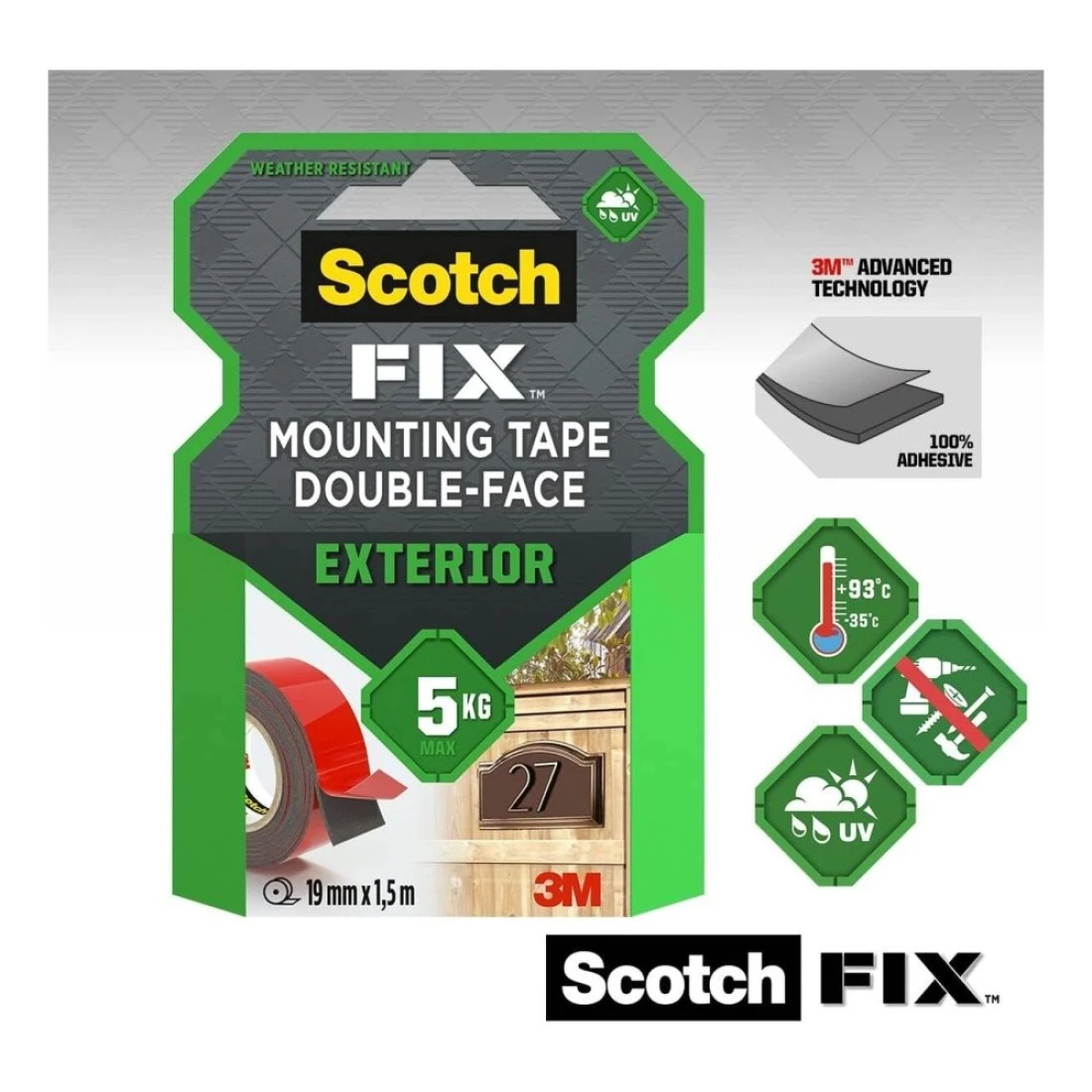 3M Scotch Fix Exterior Mounting Tape 0.019x1.5m