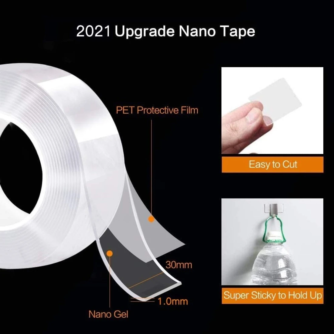 Washable & Reusable & TracelessIt can be used repeatedly, please rest assured that the nano tape is traceless when torn off. Wash it with water and dry it to regain its stickiness when the Washable Adhesive Tape gets dirty. The removable double-sided tape is very easy to remove and will not damage your walls or surfaces and leave no residue.