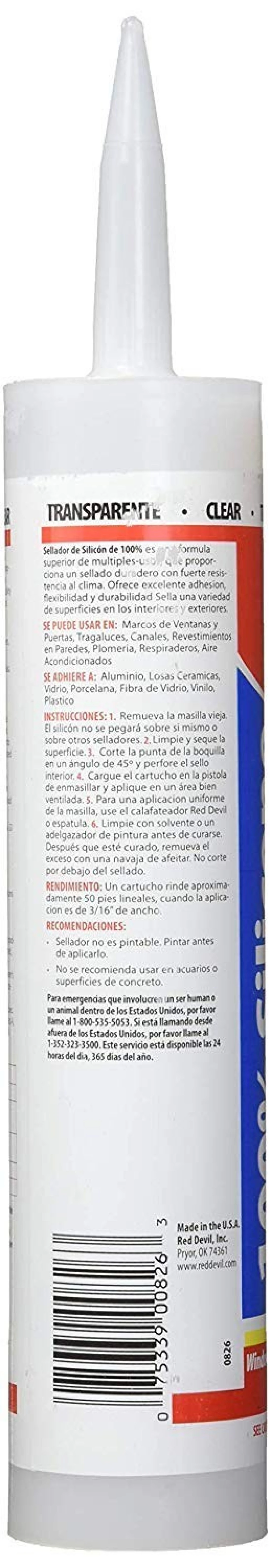 Red Devil 0826 100 Silicone Sealant Architectural Grade Silicone Architectural Grade RTV Sealant A WaterResistant Adhesive for Interior and Exterior Use 98 oz Tube Clear 1Pack