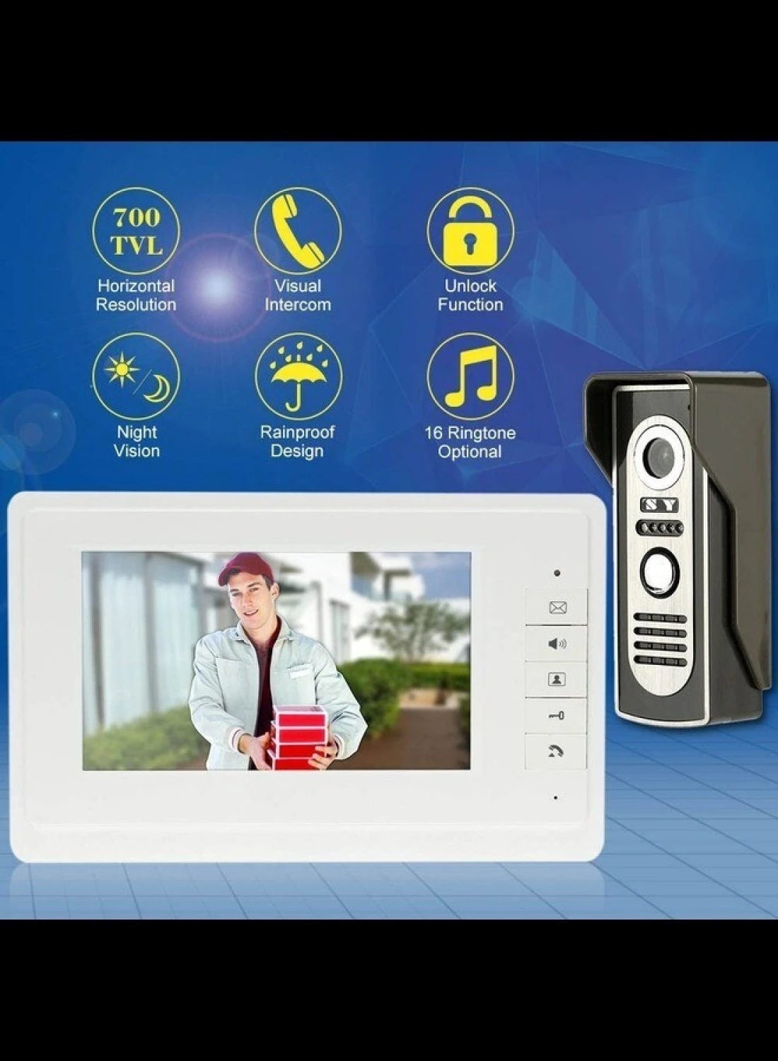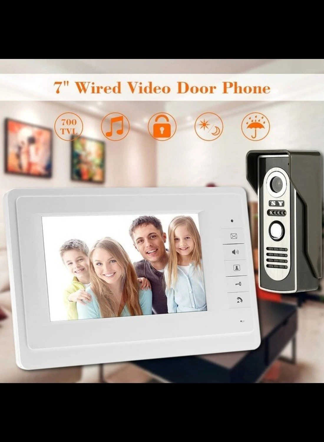 7” Wired Door Phone System Intercom Doorbell with Indoor and Outdoor Camera Support Unlock Infrared Night View Rainproof for Home Surveillance