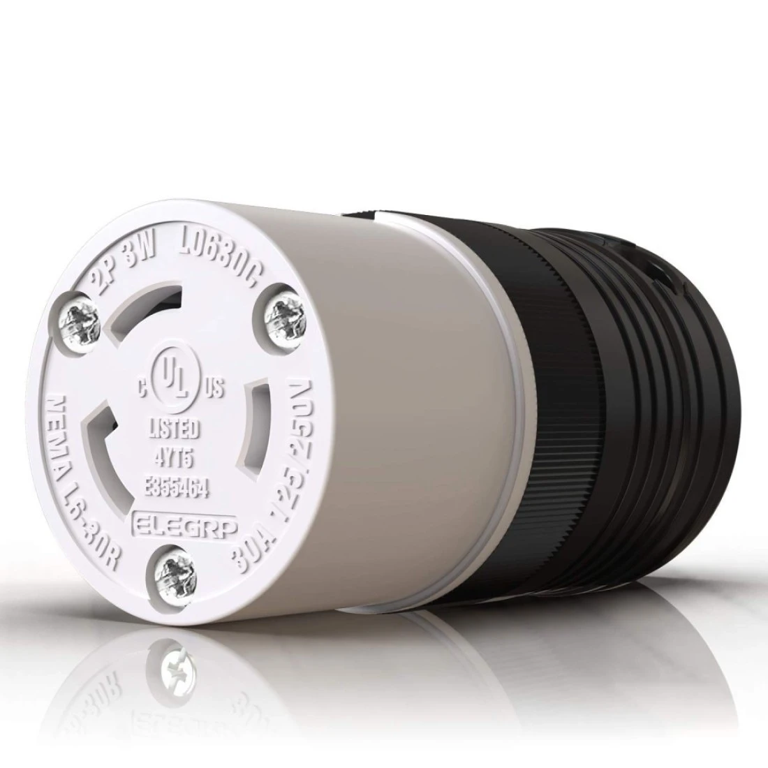 ELEGRP NEMA L630R Locking Connector Generator Twist Lock Adapter Connector 30 Amp 250V 2 Pole 3 Wire Grounding Industrial Grade Heavy Duty UL Listed 1 Pack BlackWhite