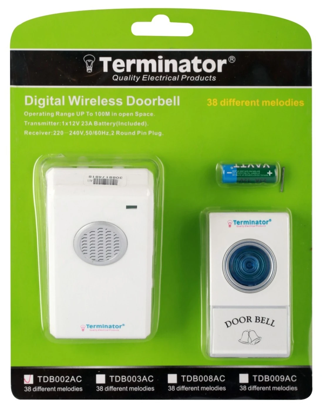 Terminator Brand Digital Wireless Door Bell with 38 Different Melodies - 2 pin