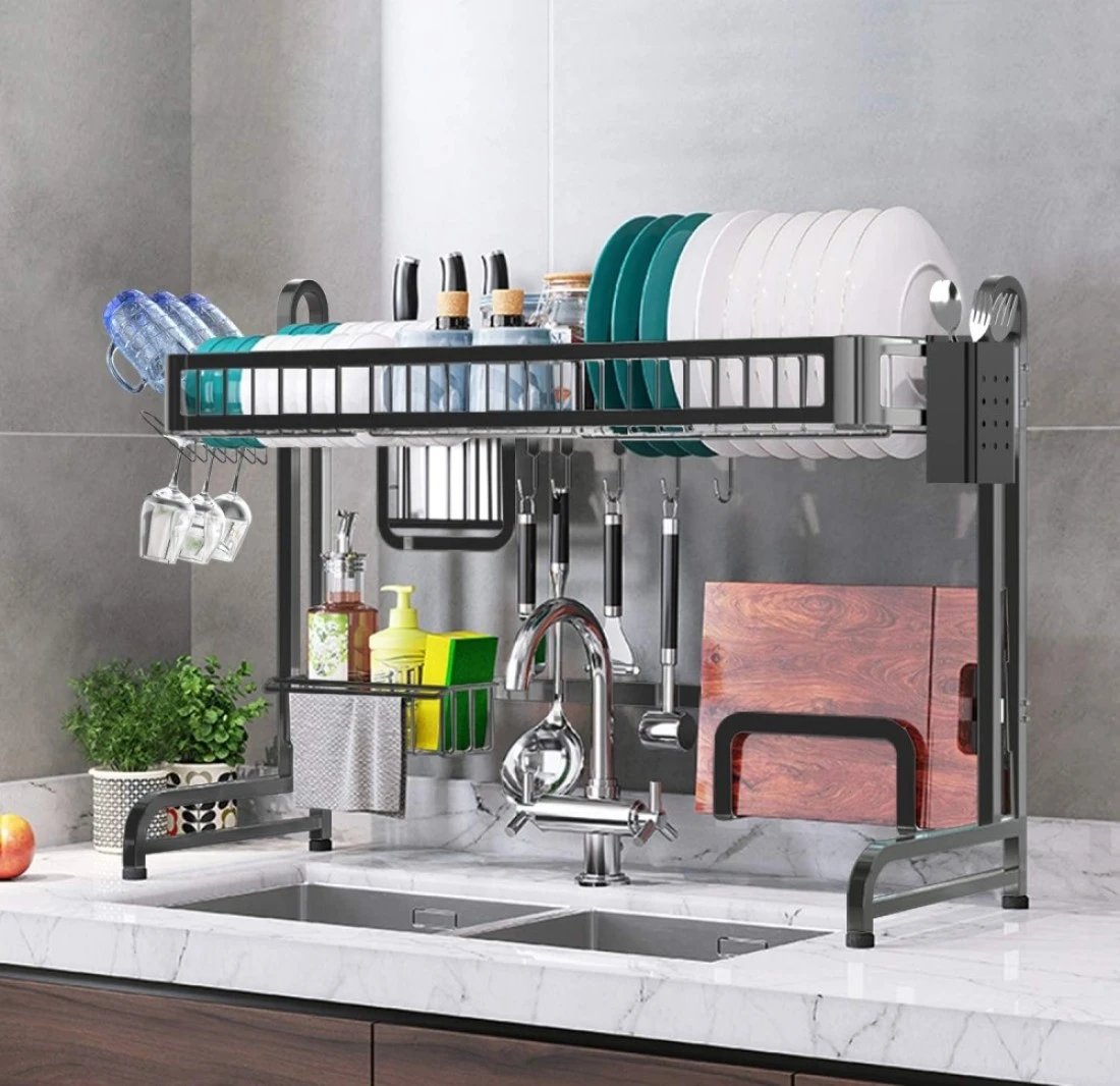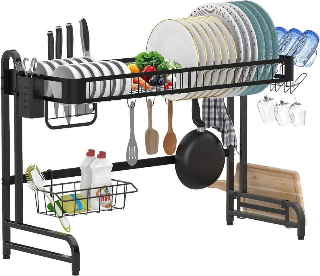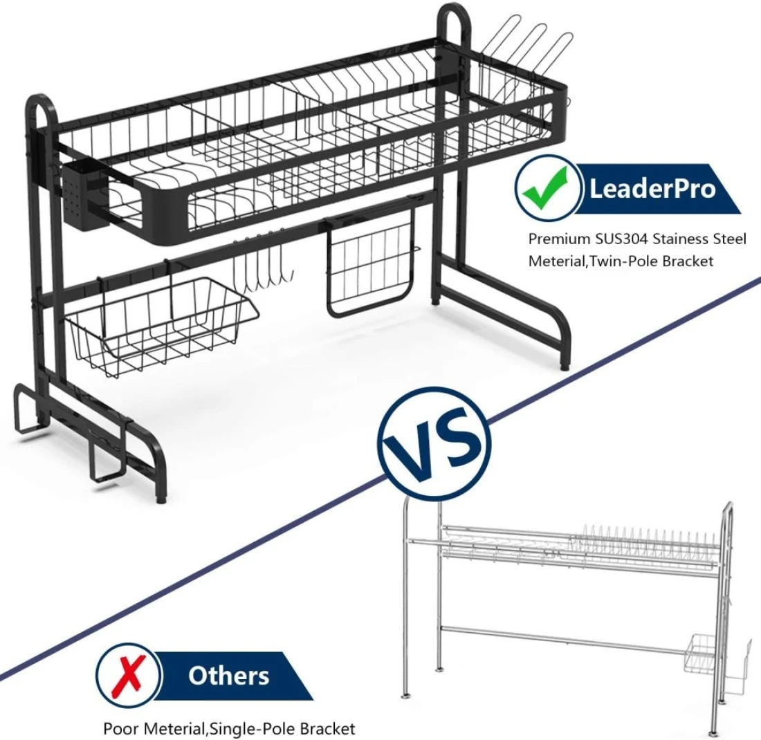 PREMIUN MATERIAL: This dish drying rack is made of superior quality advanced SUS304 stainless steel, ensuring long lasting durability and easy to clean. The stainless steel layer is coated with piano black finish layer and rust-proof layer, which keep your dish drying rack away from rusting for long time.
