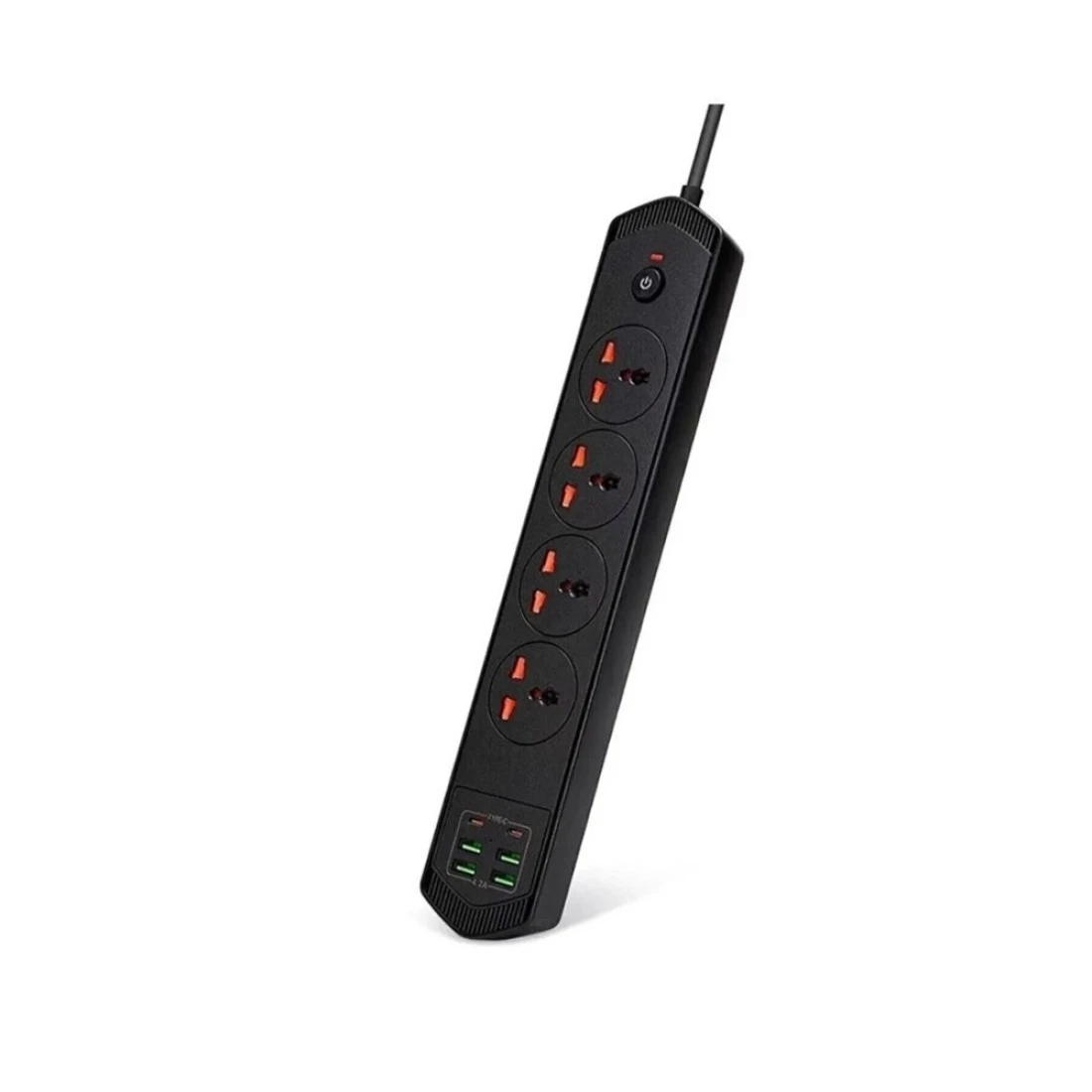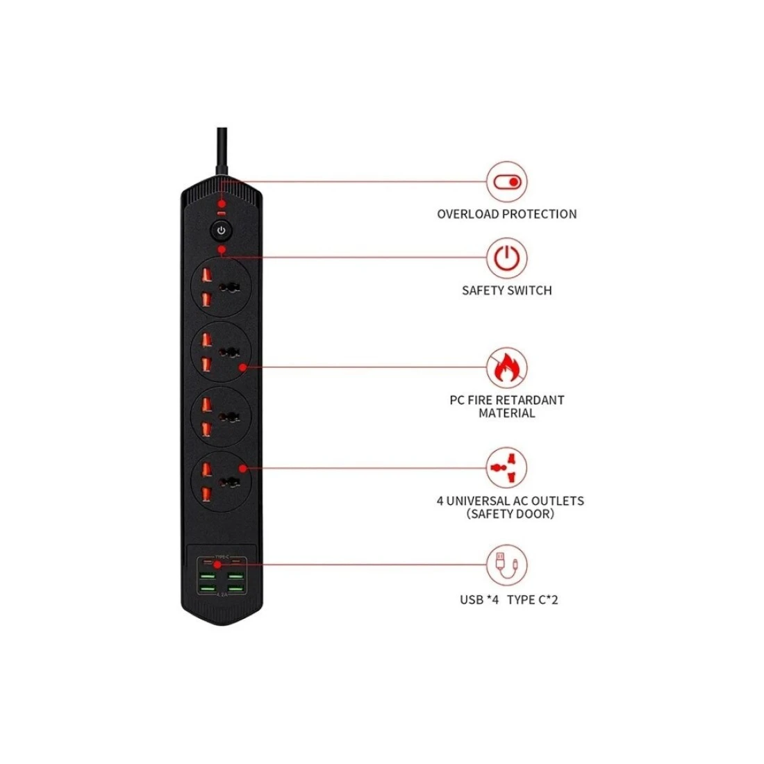 WECOM 2M Surge Protector Power Extension Cord 4 AC Outlets with 4 USB Ports and 2 Type-C Ports Power Strip for Home Office, Computers, and Electronics, Black