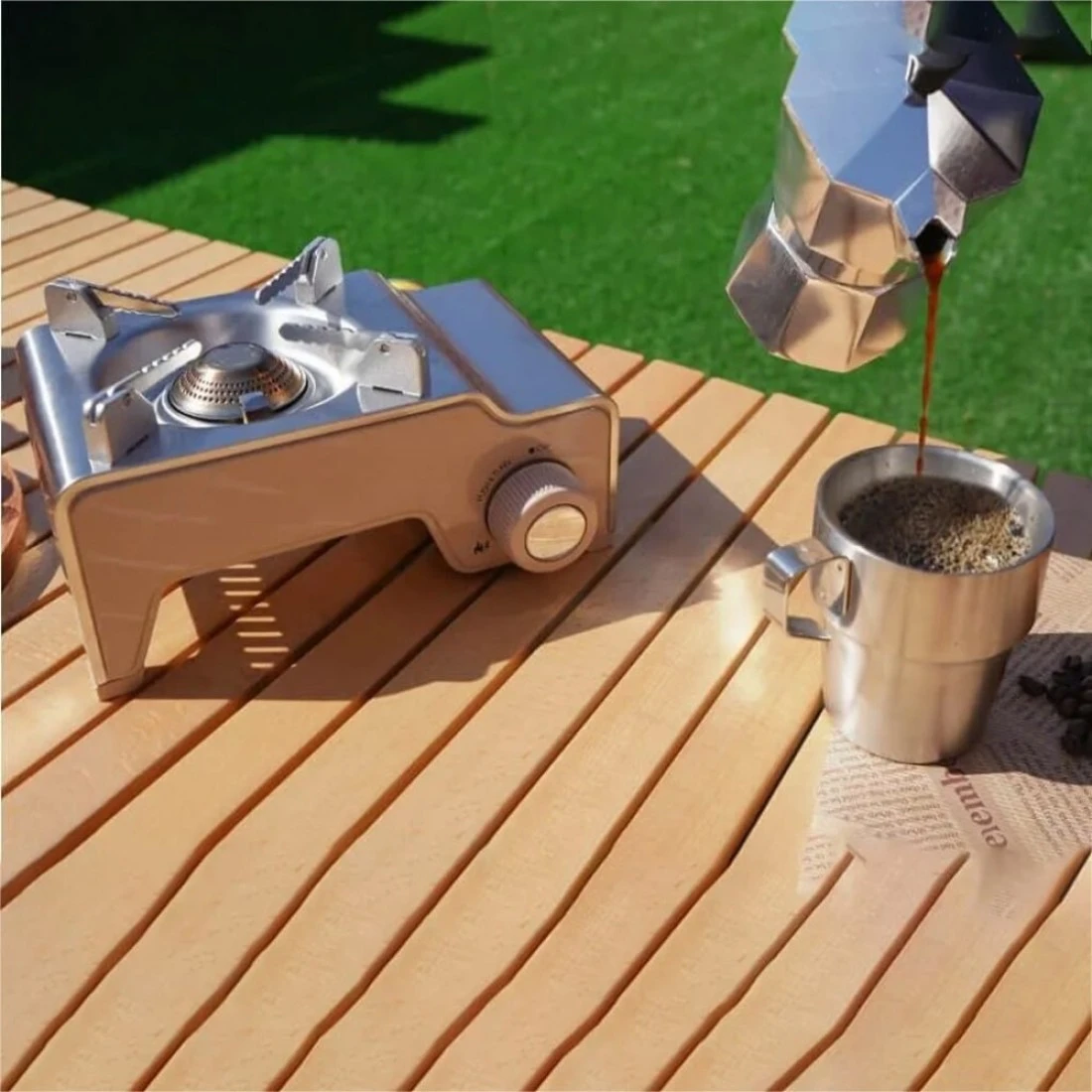 OMEGA 5 Powerful Portable Mini Gas Stove for Camping - Brown
