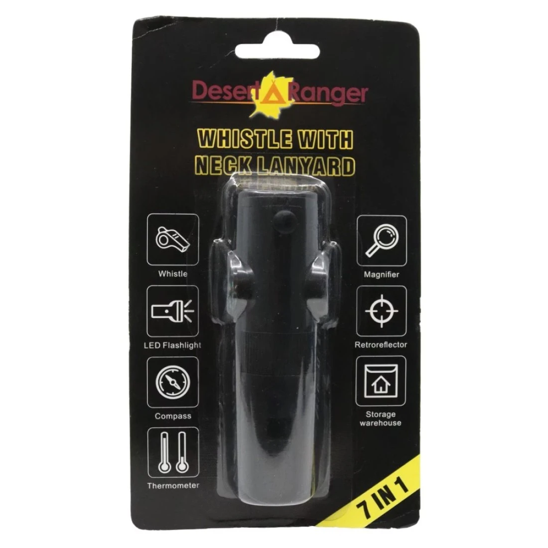 Desert Ranger 7-In-1 Whistle With Neck Lanyard Black