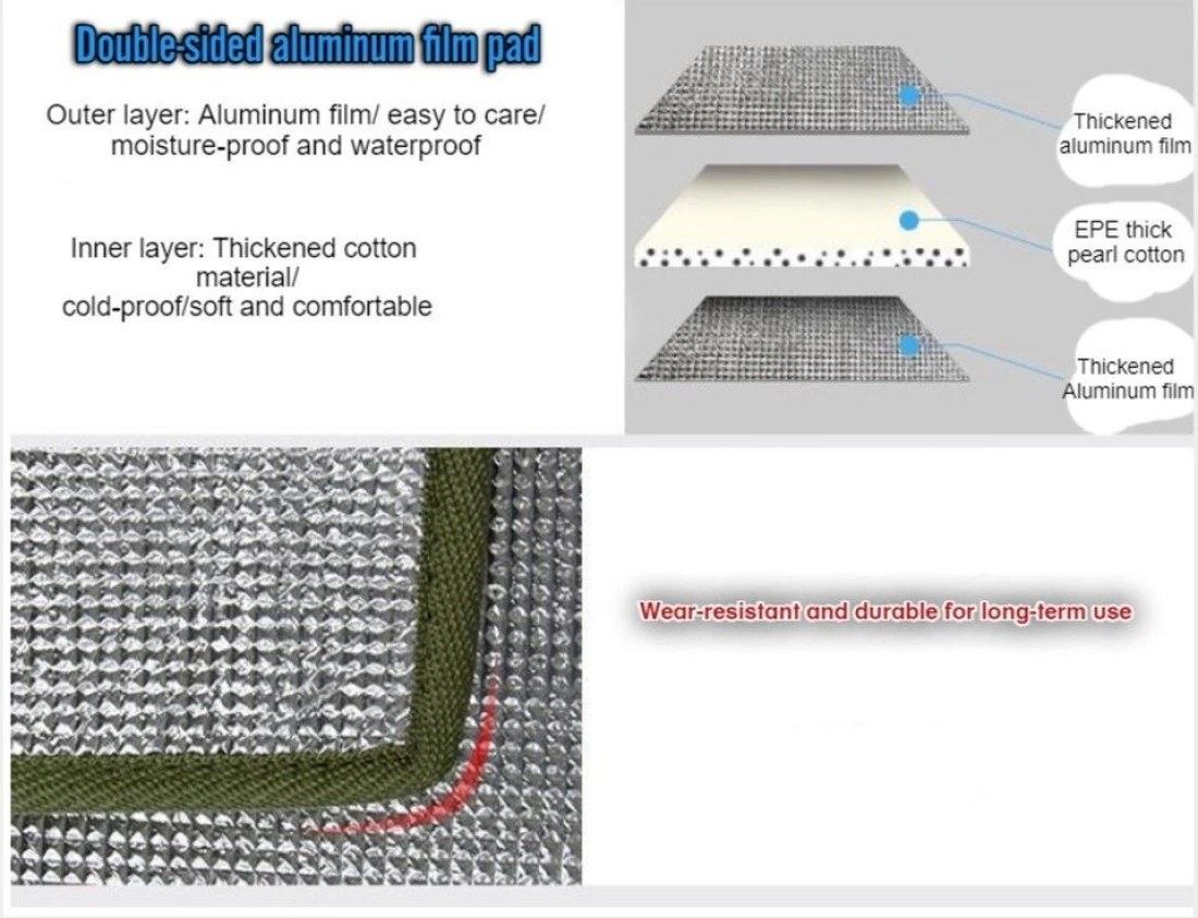 Fabric: Waterproof and soft aluminum foil fabric, with the function of blocking moisture and preventing water leakage