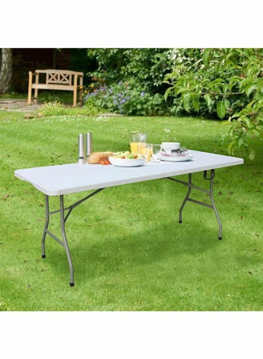 - The portable commercial grade table seats up to 8 adults