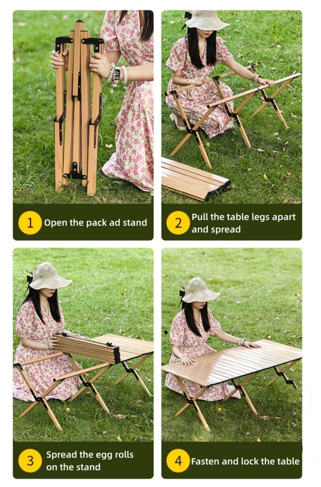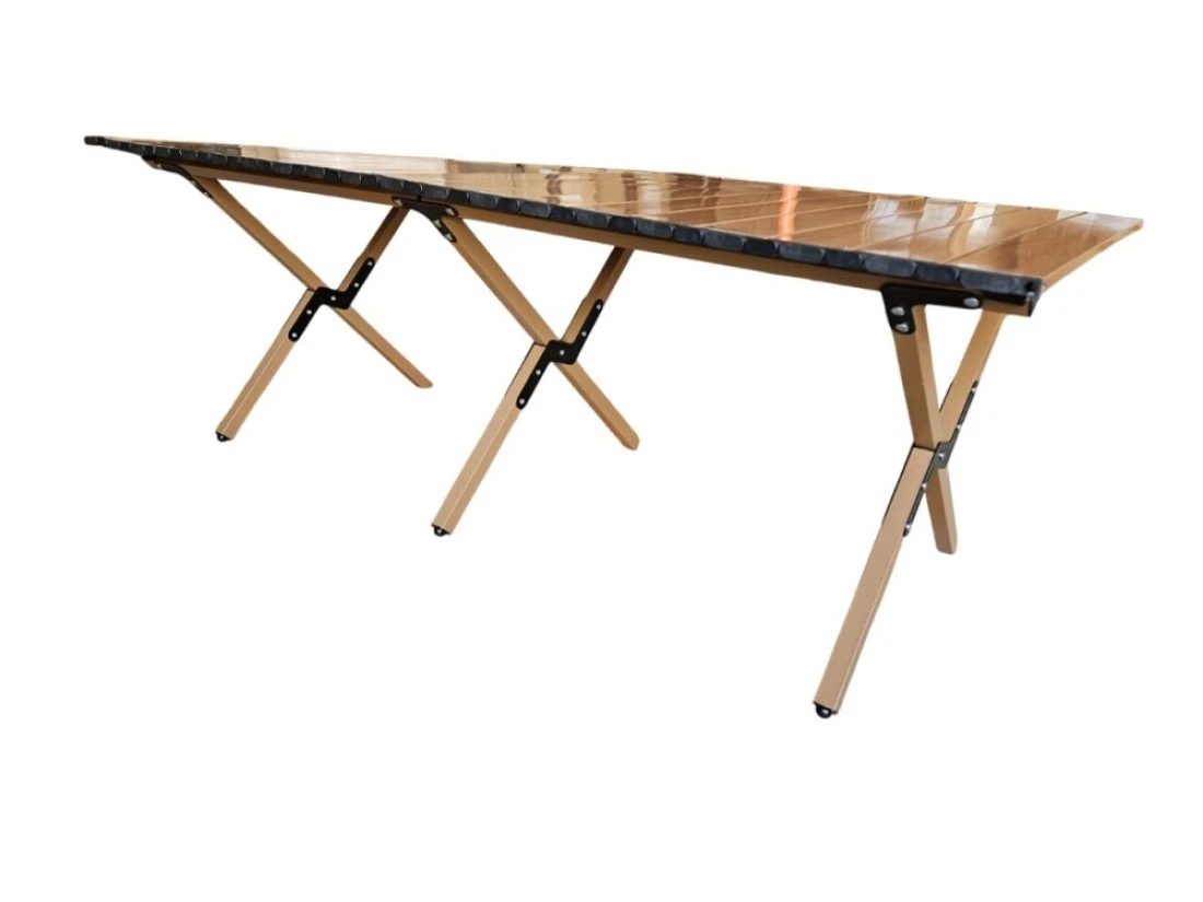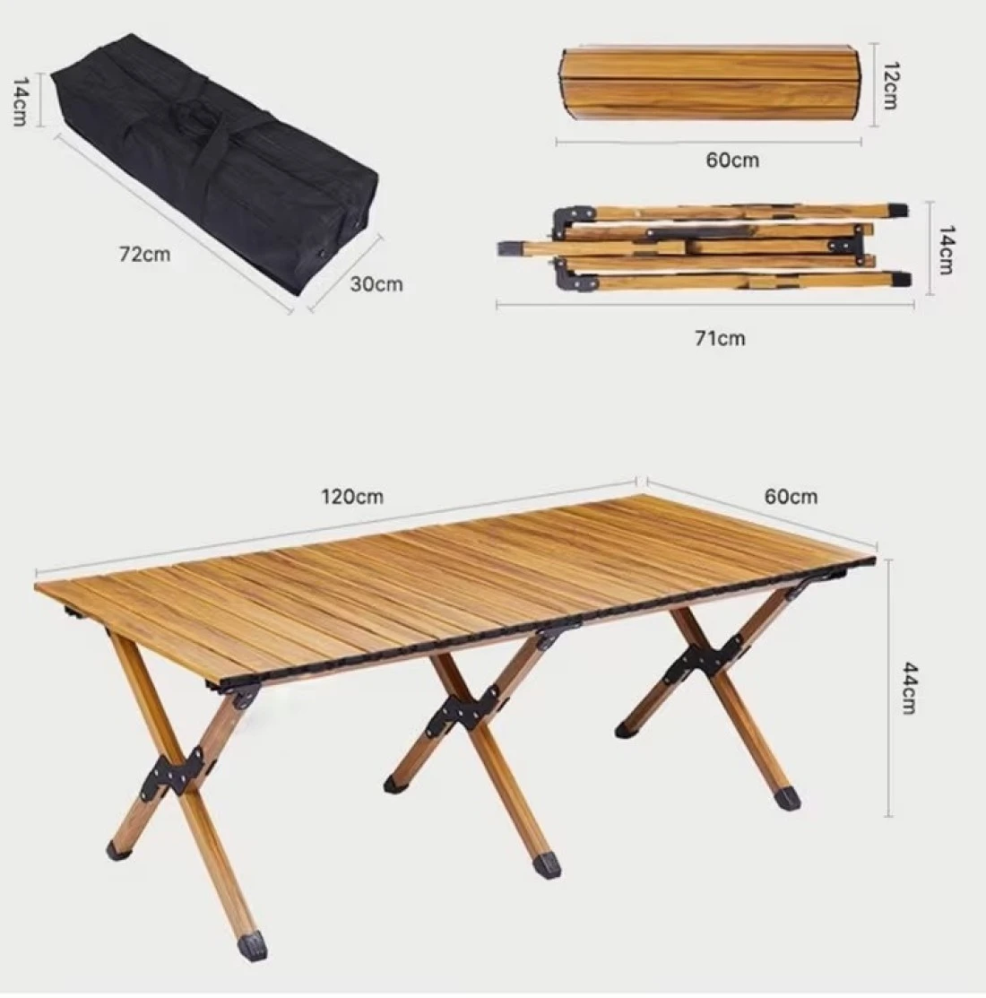 Brown Folding camping table carbon steel portable roll-up picnic table for 4-6 person BBQ Party Large Size 120*60*45cm